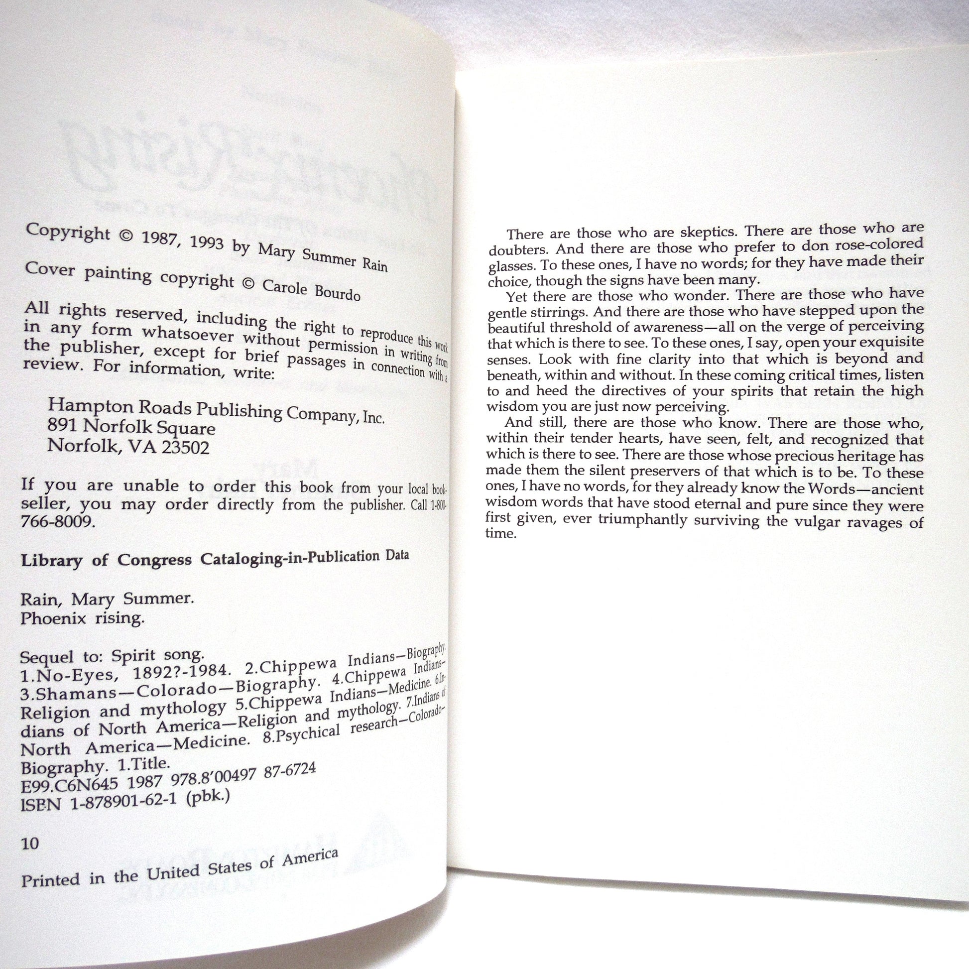 PHOENIX RISING, No-Eyes' Vision Of the Changes To Come, Mary Summer Rain's relationship with the old and wise Indian shaman No-Eyes, introduced in Spirit Song, continues, as she reveals to Mary her compelling visions of the future.