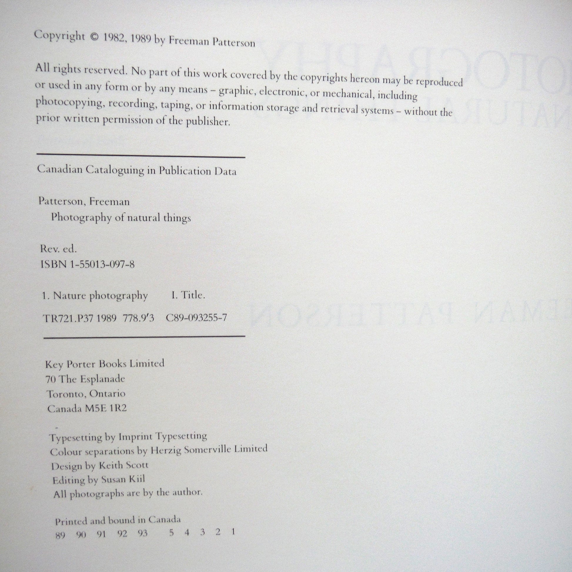 PHOTOGRAPHY OF NATURAL THINGS, by Freeman Patterson, 1989