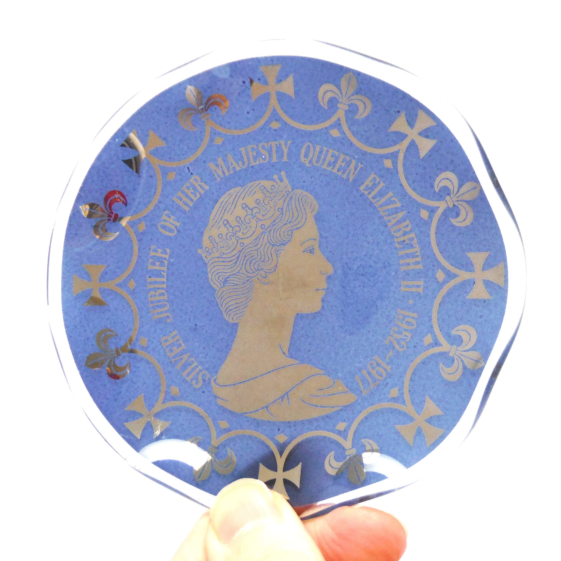 QUEEN ELIZABETH II SILVER JUBILEE: Round Glass Trinket Tray, 1977