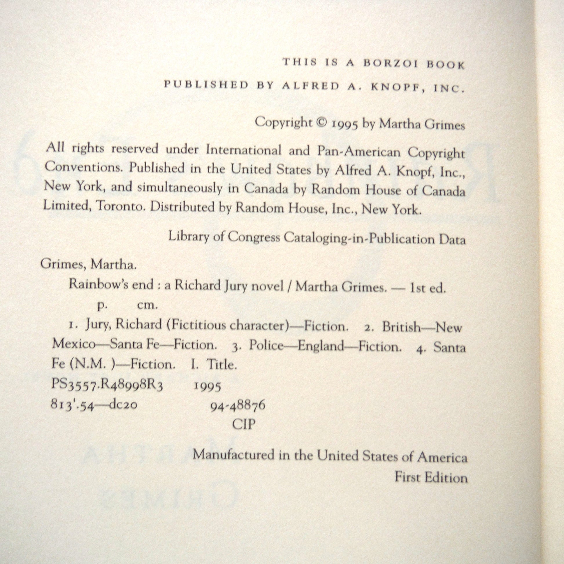 RAINBOW'S END, A Richard Jury Novel, by Martha Grimes (1995 1st Ed.)