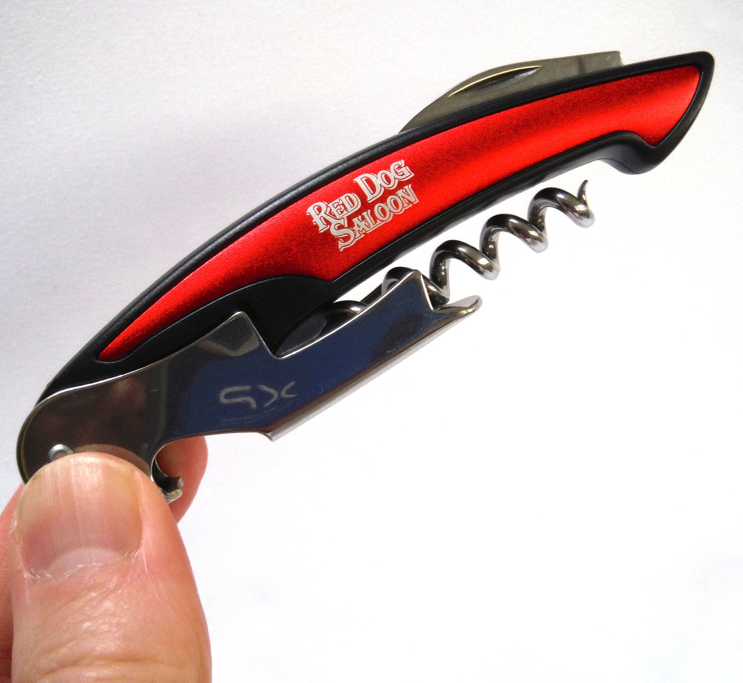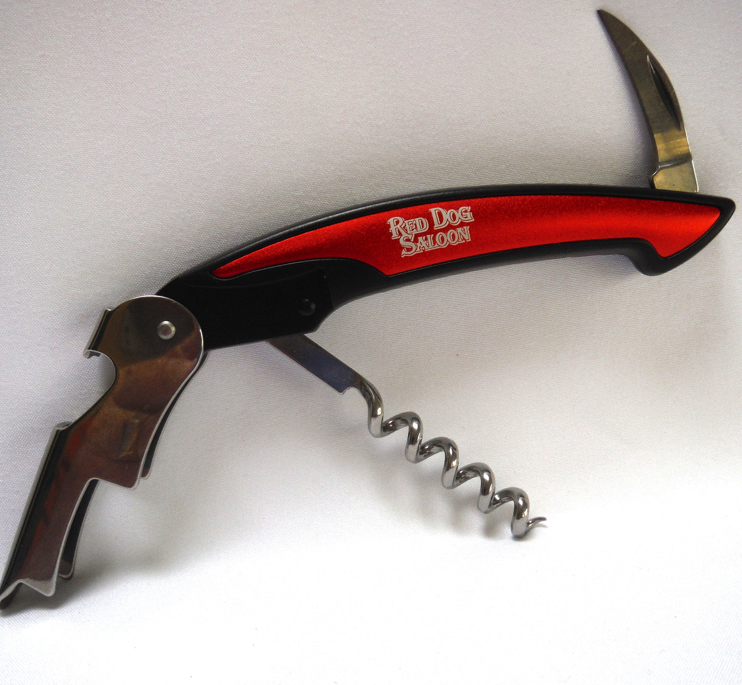 This RED DOG SALOON Multi-Use Wine Opening Tool in Crimsen Red, is not old by any stretch of the mind, like I bought it 2 years ago while on an Alaskan cruise that stopped in Juneau. Man this place rocked! I highly recommend visiting here while in town, but if no visit is planned, now at least you can own one of their famous openers.