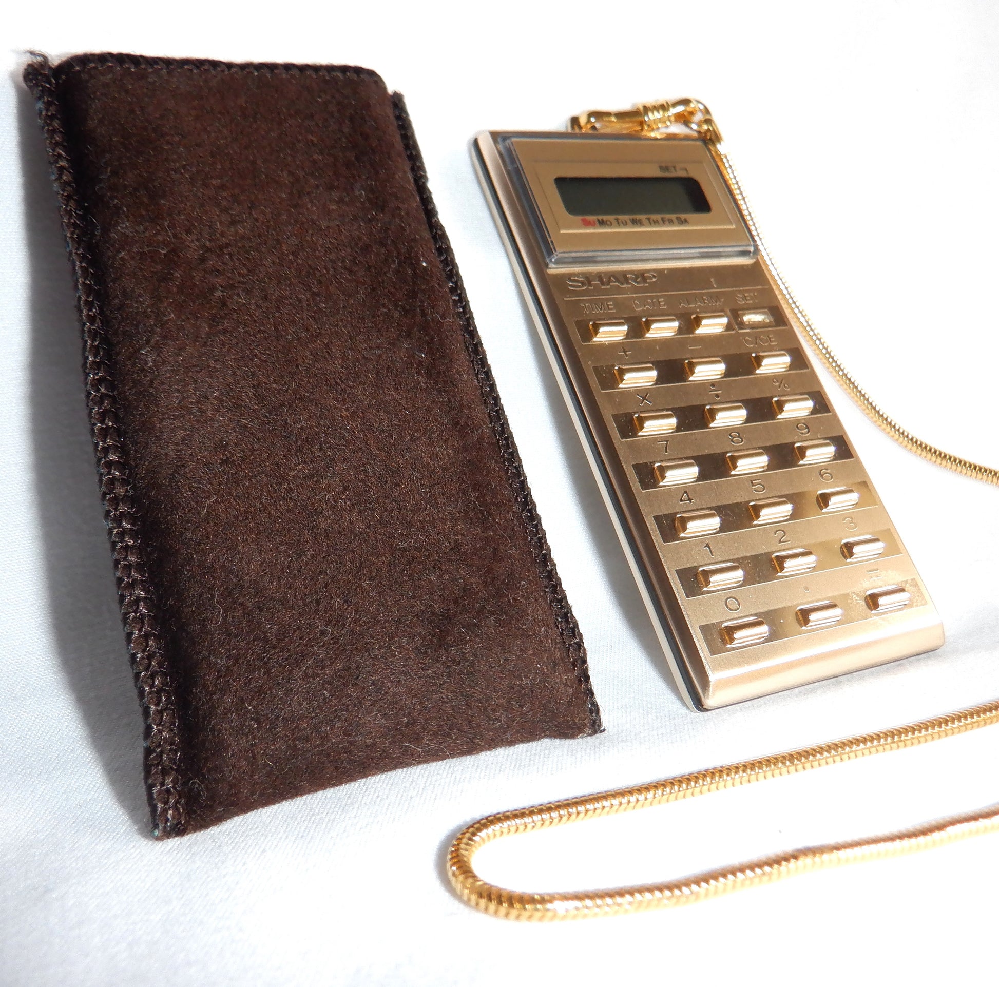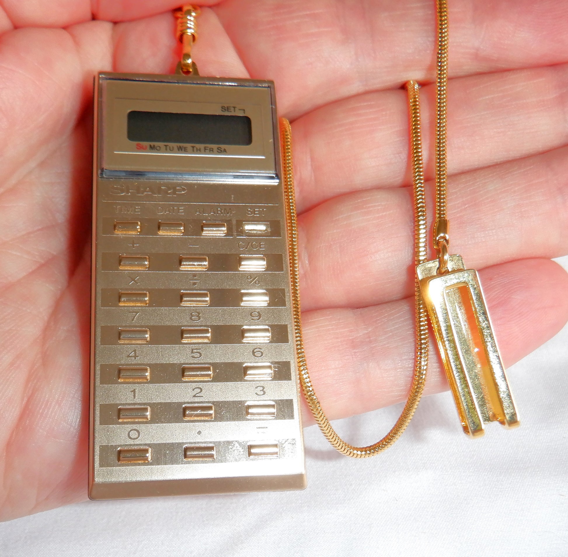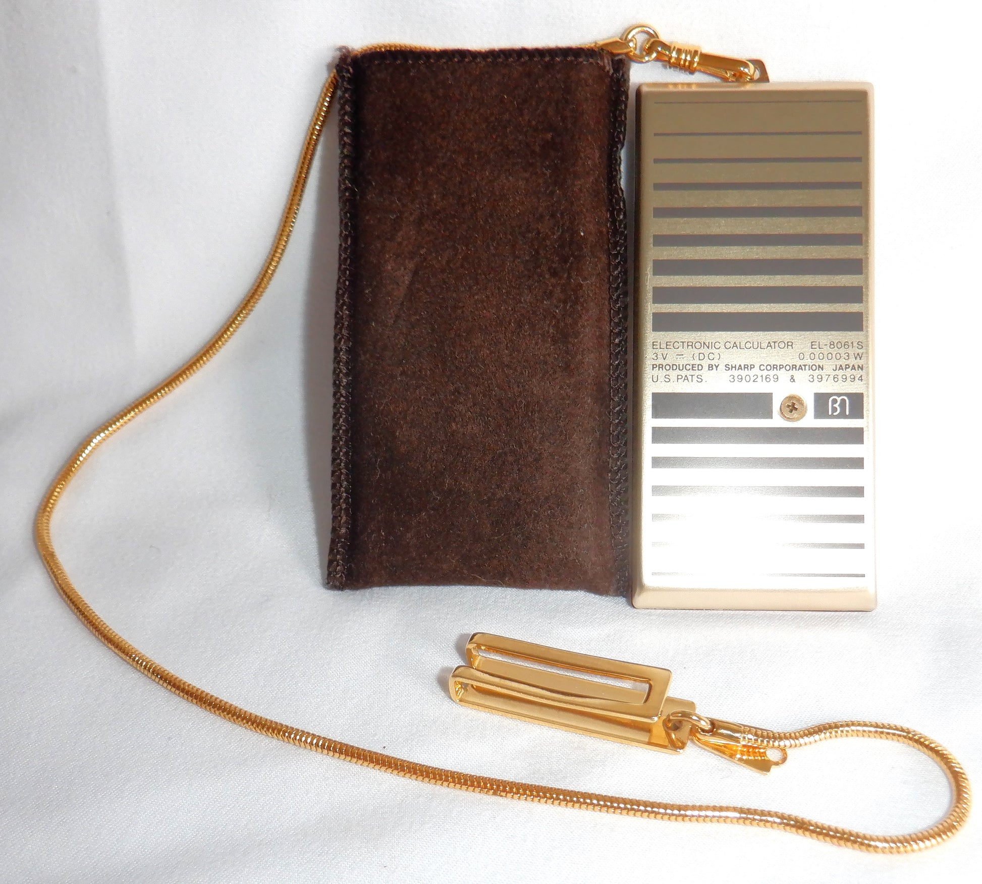 VINTAGE SHARP POCKET CALCULATOR, Model # EL-8061S, MINT Condition w/chain, clasp, key & case! This little electronic wonder of the 80's was cutting-edge technology back when I sold office supplies for Grand & Toy in Ottawa, 1978-1992, and it was during this time I received this as a gift from the company. I never used it. This one is BRAND NEW MINT CONDITION and comes with the beautiful gold chain, the clasp, the key (used to "input-set" the info) and a small velour carry-case. Of course it needs a new battery, which is readily available anywhere. Made in Japan.