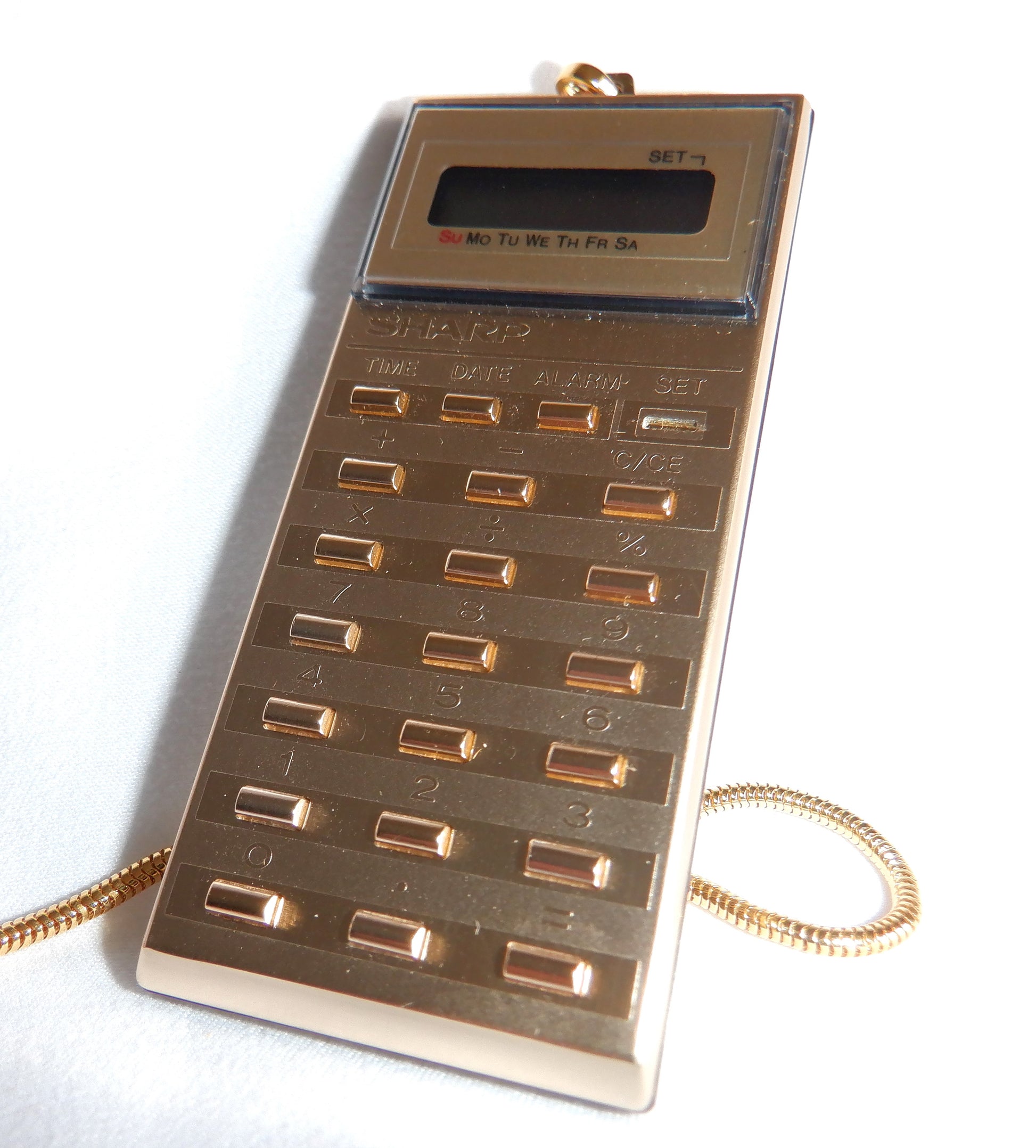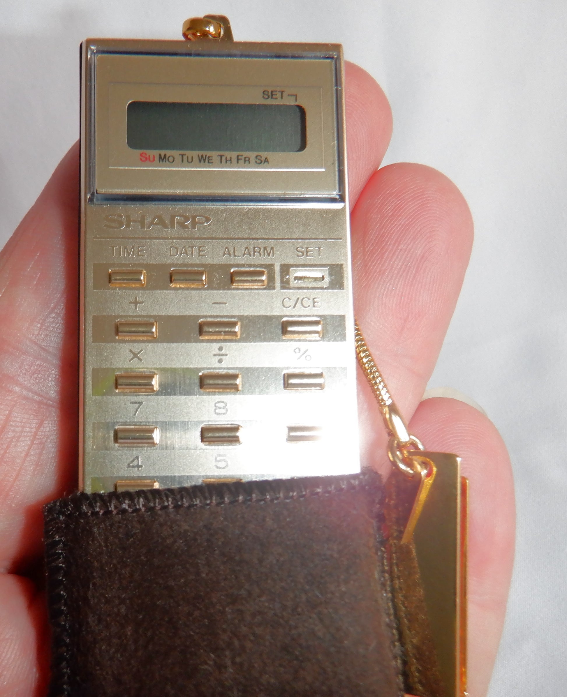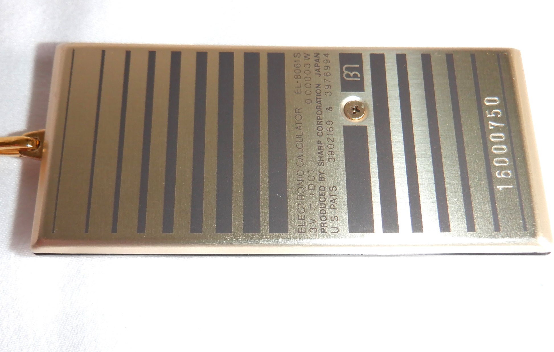 VINTAGE SHARP POCKET CALCULATOR, Model # EL-8061S, MINT Condition w/chain, clasp, key & case! This little electronic wonder of the 80's was cutting-edge technology back when I sold office supplies for Grand & Toy in Ottawa, 1978-1992, and it was during this time I received this as a gift from the company. I never used it. This one is BRAND NEW MINT CONDITION and comes with the beautiful gold chain, the clasp, the key (used to "input-set" the info) and a small velour carry-case. Of course it needs a new battery, which is readily available anywhere. Made in Japan.