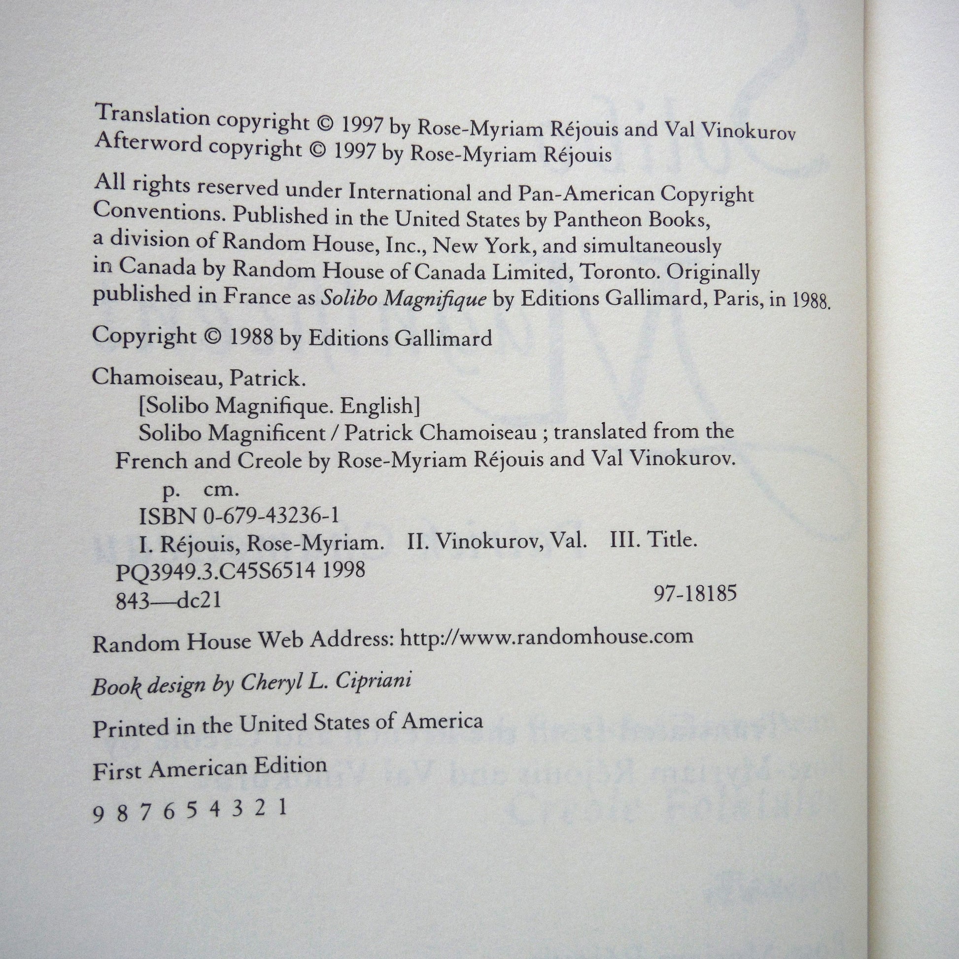 Author: Patrick Chamoiseau. Translated from the French and Creaole by Rose-Myriam Regouis and Val Vinokurov. Published by Pantheon Books, NY, USA., 1980, 1st Ed., (This is the 1st American Printing, 1997). Printed in USA. Like New Condition HARDCOVER BOOK, with lovely deckle-edged paper. Excellent Condition Dust Jacket, and a clear mylar removable protector on cover. Clean inside, tight spine. Size: 8.5 x 5.75 inch, 190 pages.ย ย