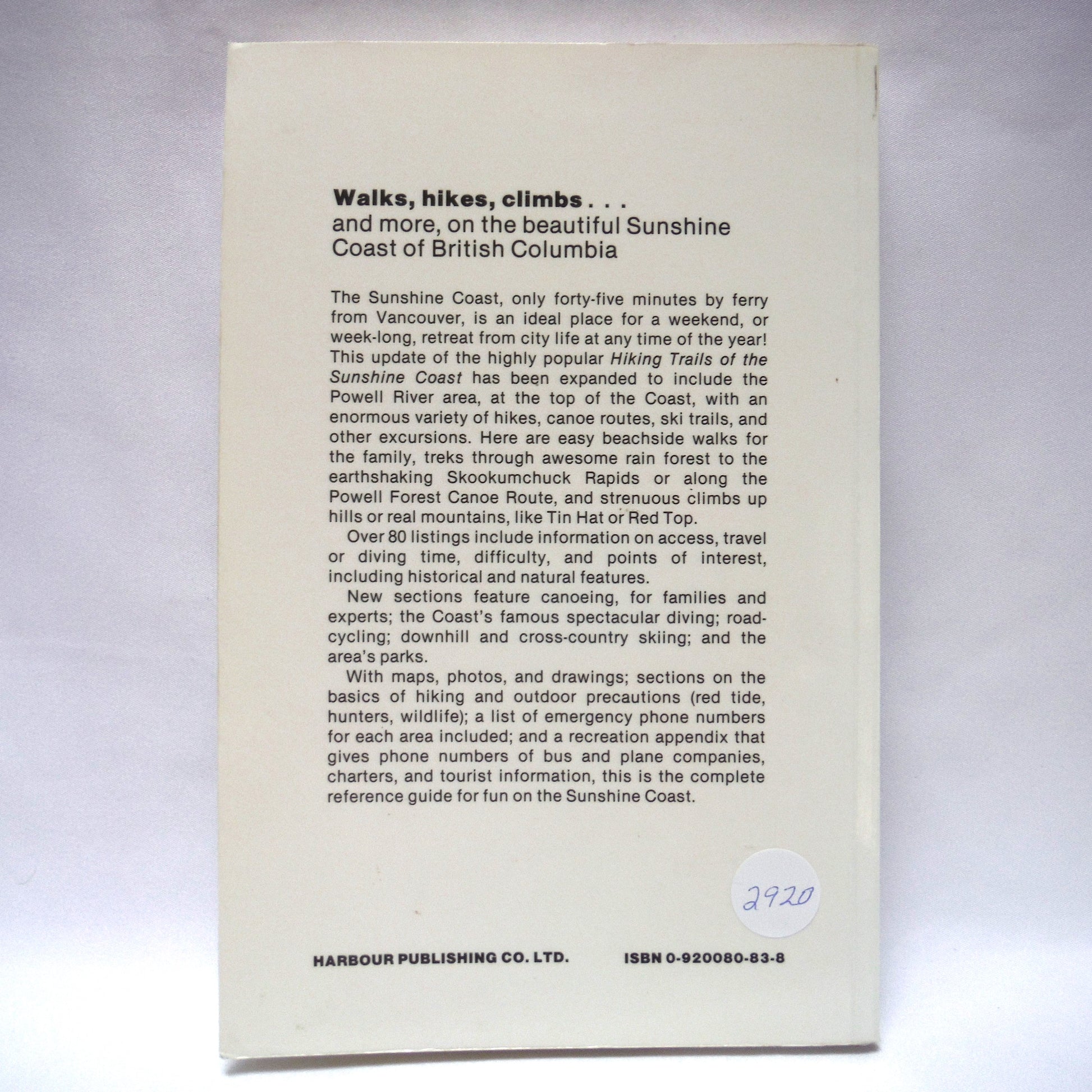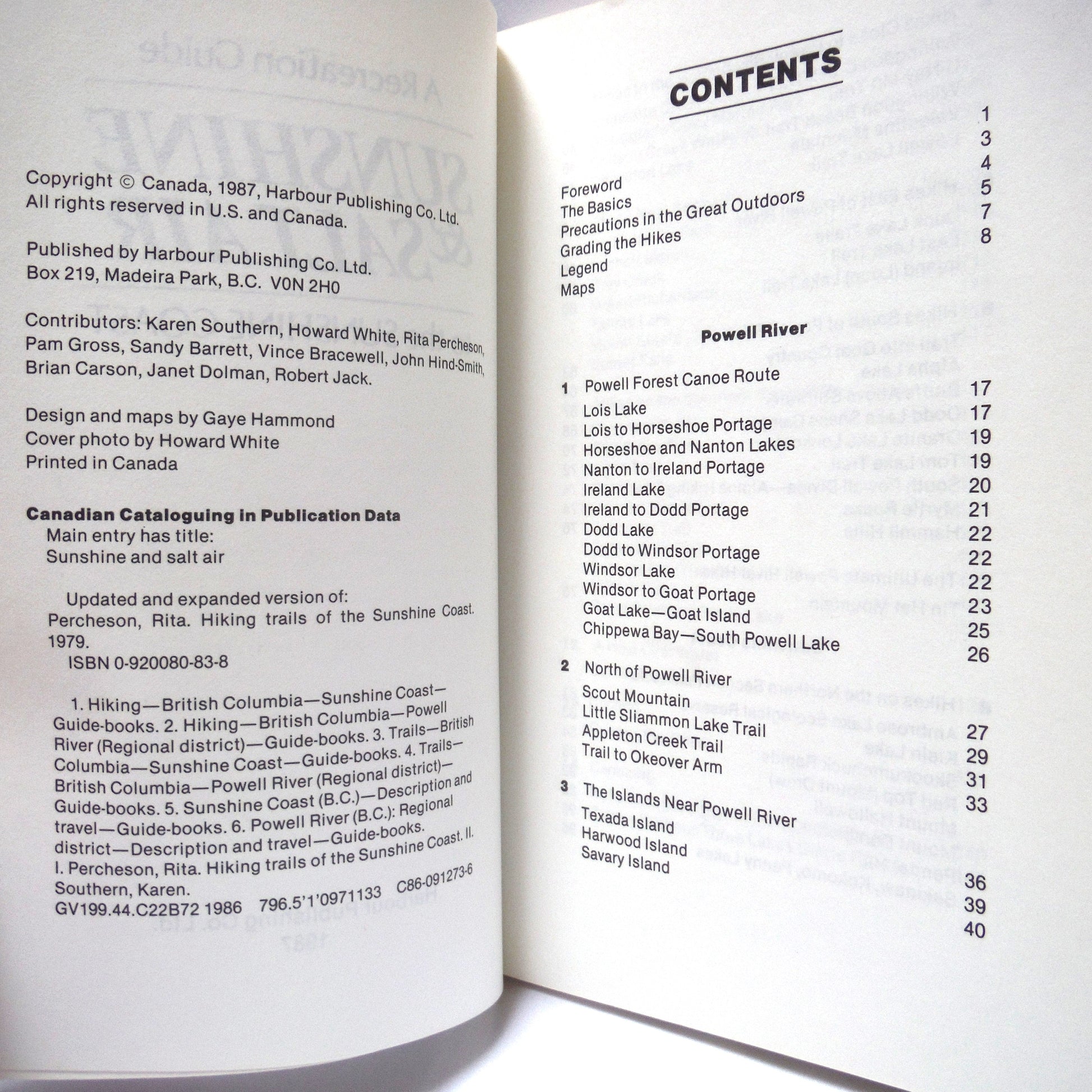 SUNSHINE & SALT AIR, A Recreation Guide to The Sunshine Coast, by The Harbour Publishing Company Limited (1987 1st Ed.)