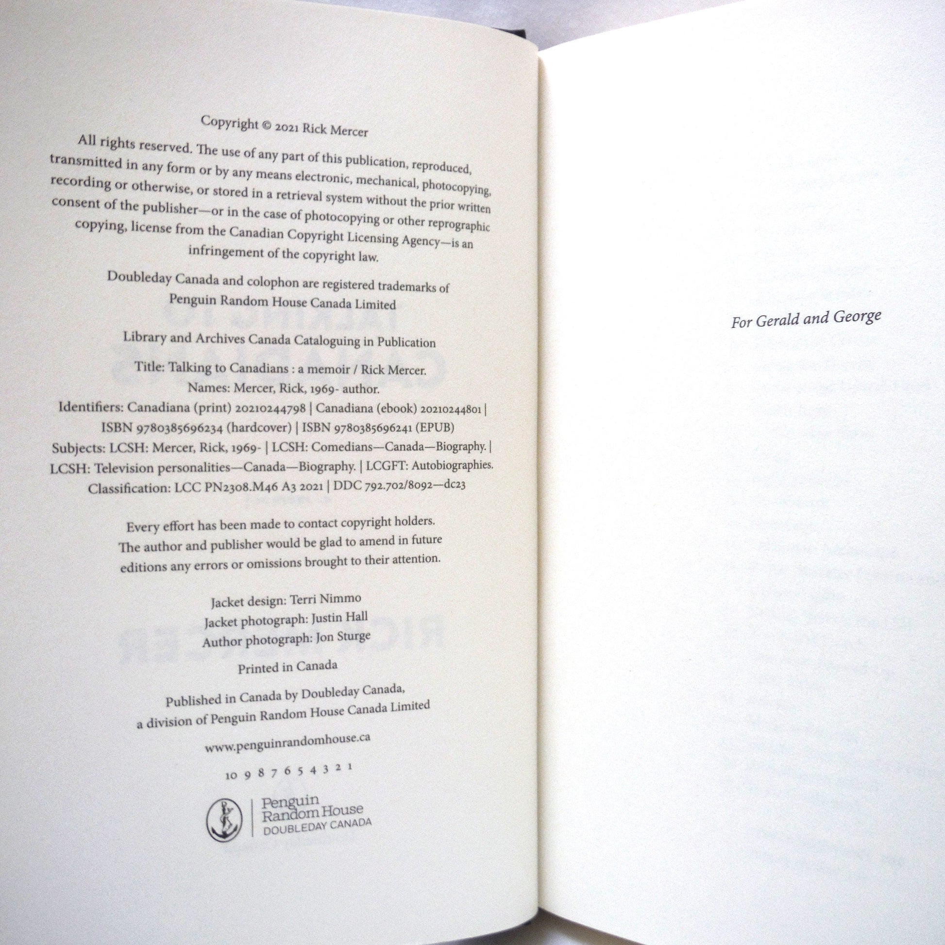 TALKING TO CANADIANS, A Memoir by Rick Mercer (2021 1st Ed.)