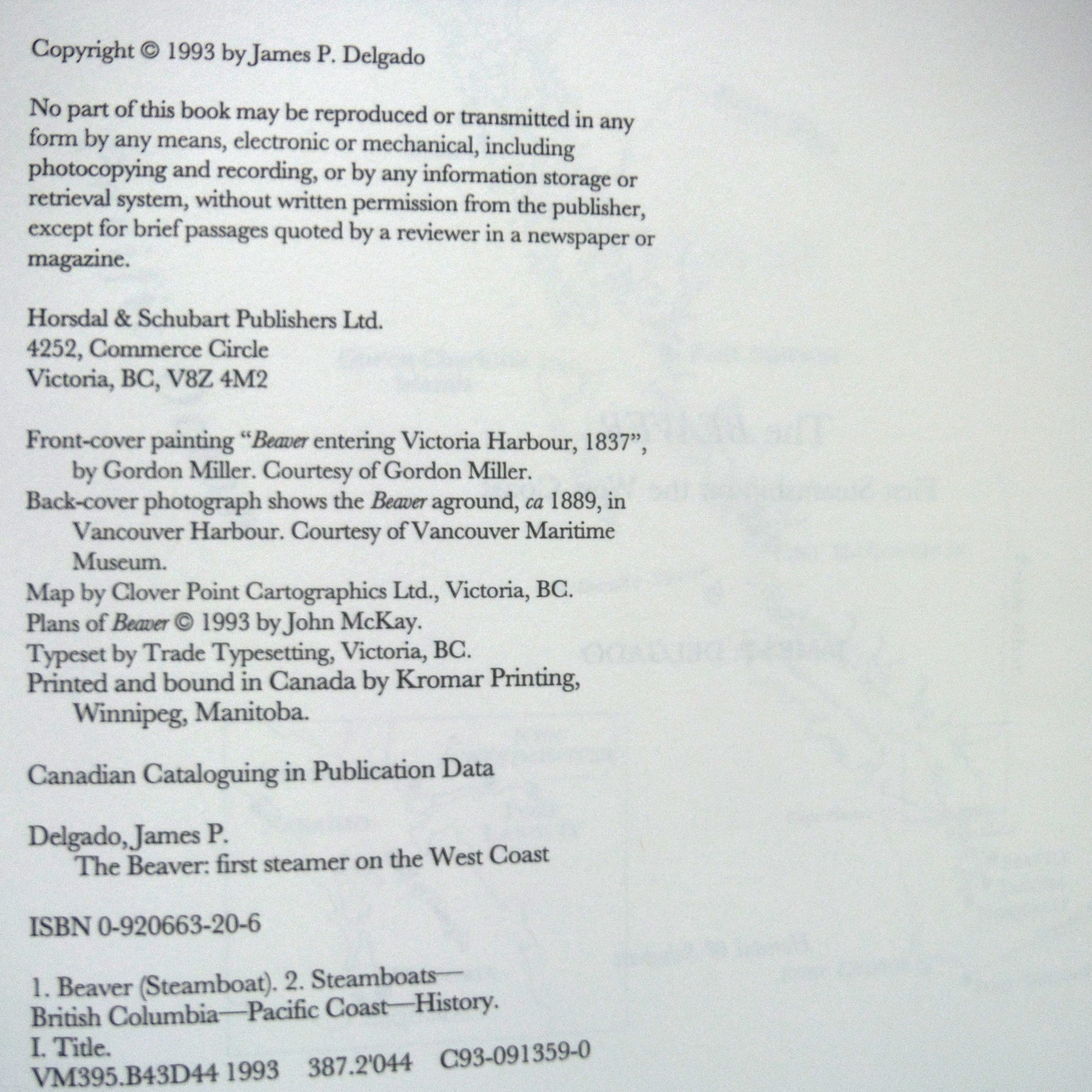 THE BEAVER, First Steamship on the West Coast, by James P. Delgado (1993 1st Ed.)