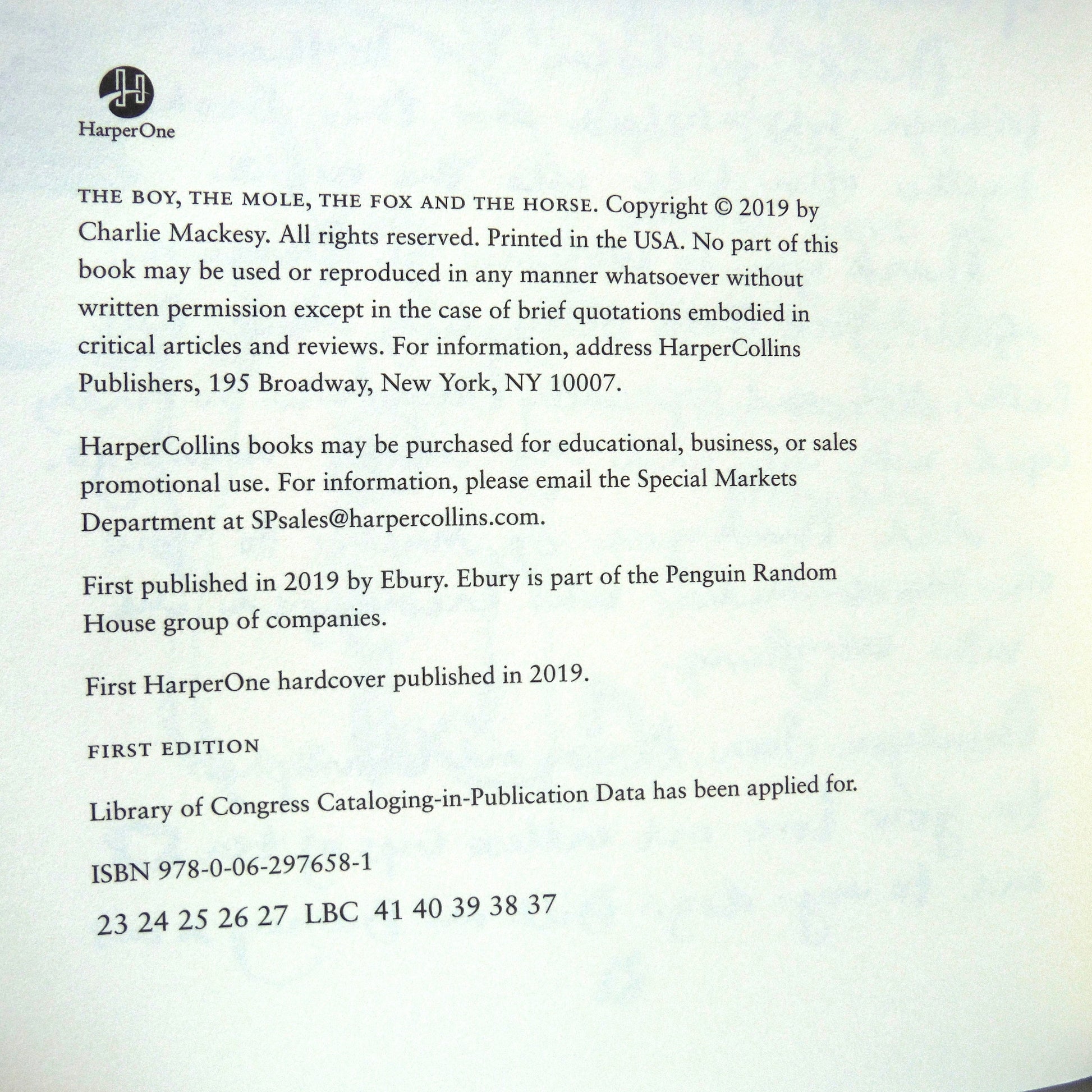 Author: Charlie Mackesy. Published by HarperOne, USA., 2019, 1st Edition. Printed in USA. Almost New Condition HARDCOVER BOOK, no Dust Jacket issued. Clean inside, tight spine. Size: 8.25 x 6.25 inch.