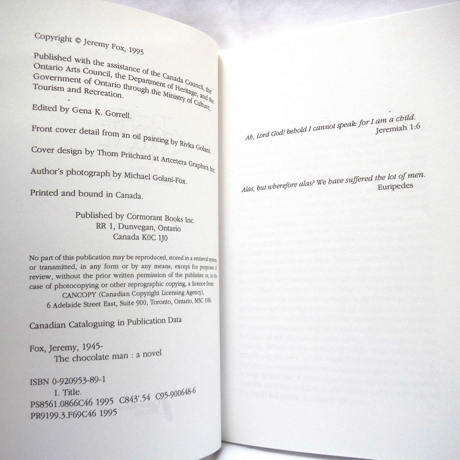 Author: Jeremy Fox. Published by Cormorant Books, Dunvegan, ON., 1995, 1st Edition. Printed in Canada. Like New Condition SOFTCOVER Book. Clean inside, tight spine. Size: 8.25 x 5.25 inch, 187 pages. BONUS: The original printed 'Press Release' on Cormorant Books letterhead is included FREE with purchase of this book!