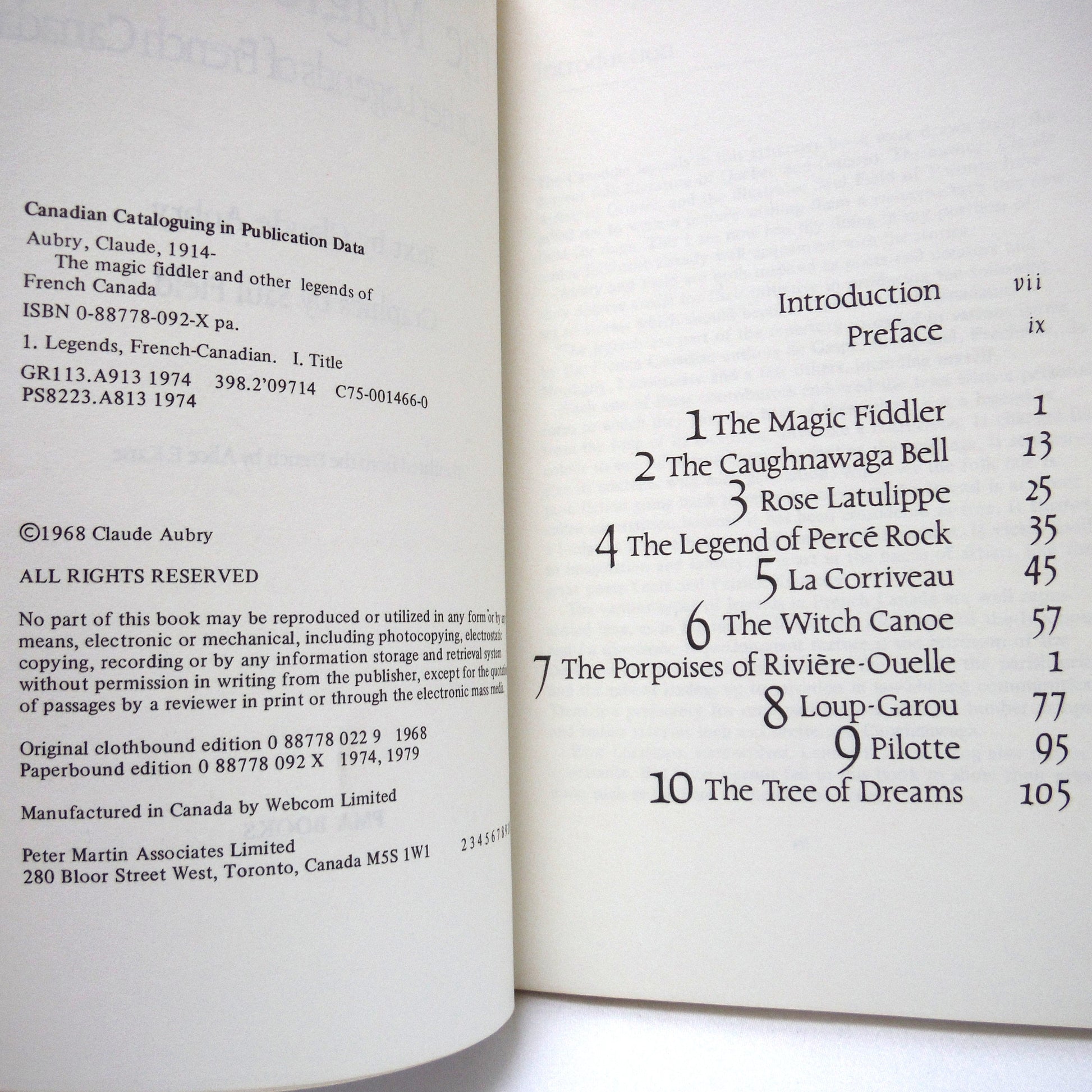 THE MAGIC FIDDLER, And Other Legends of French Canada, Text by Claude Aubry, Graphics by Saul Field, is a collection of TEN traditional tales from French Canada, and retold for today's readers.