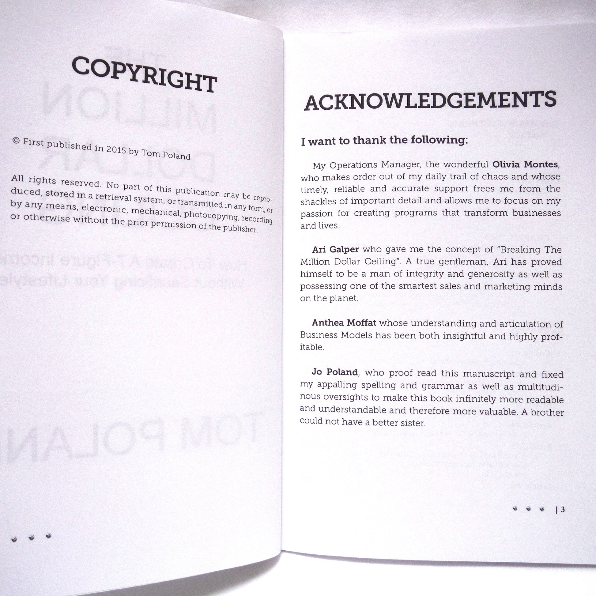 THE MILLION DOLLAR CEILING, How To Create A 7-Figure Income, by Tom Poland (2015 1st Ed.)