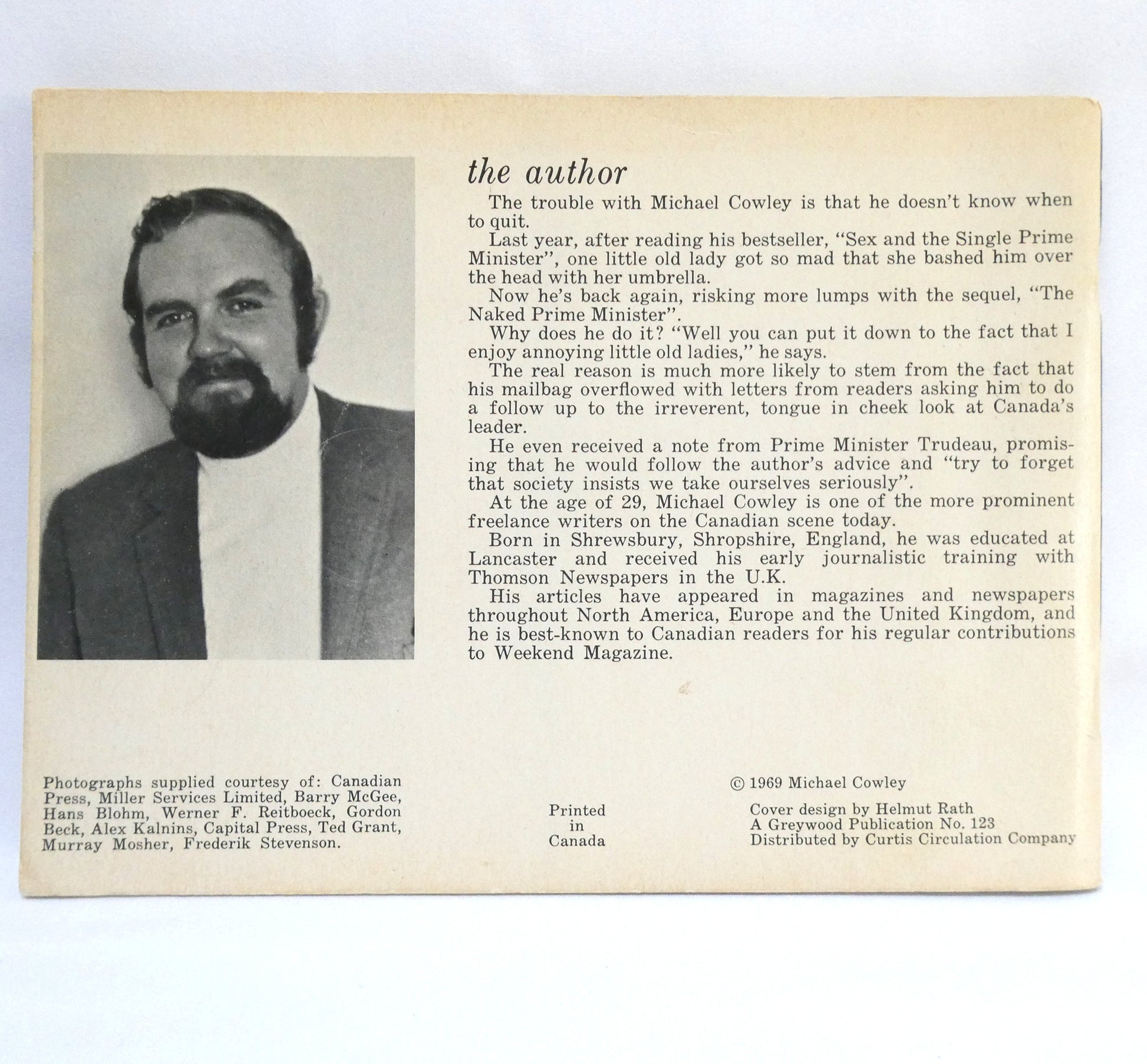 THE NAKED PRIME MINISTER, or how Pierre Elliott Trudeau gave his all to the Canadian Public, by Michael Cowley, is a Canadian Political Booklet which captures many B&W photographs of Prime Minister Trudeua's political and social events from the era, complete with funny 'bubble' captions of what people are saying.