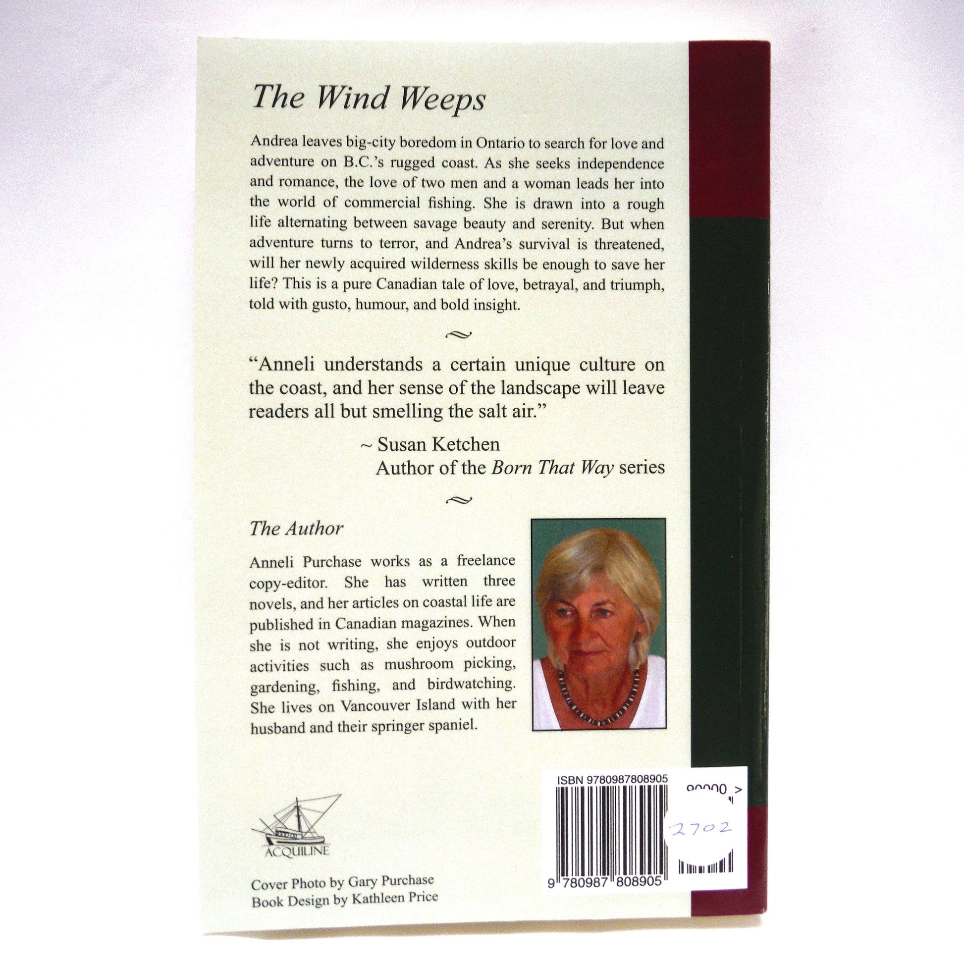 ABOUT THE AUTHOR: Anneli Purchase lives on Vancouver Island where she works as an author and a freelance copy-editor. Her articles on coastal life have appeared in Canadian and UK magazines. She has published five novels (The Wind Weeps and its sequel Reckoning Tide, Orion's Gift, Julia's Violinist, and Marlie).