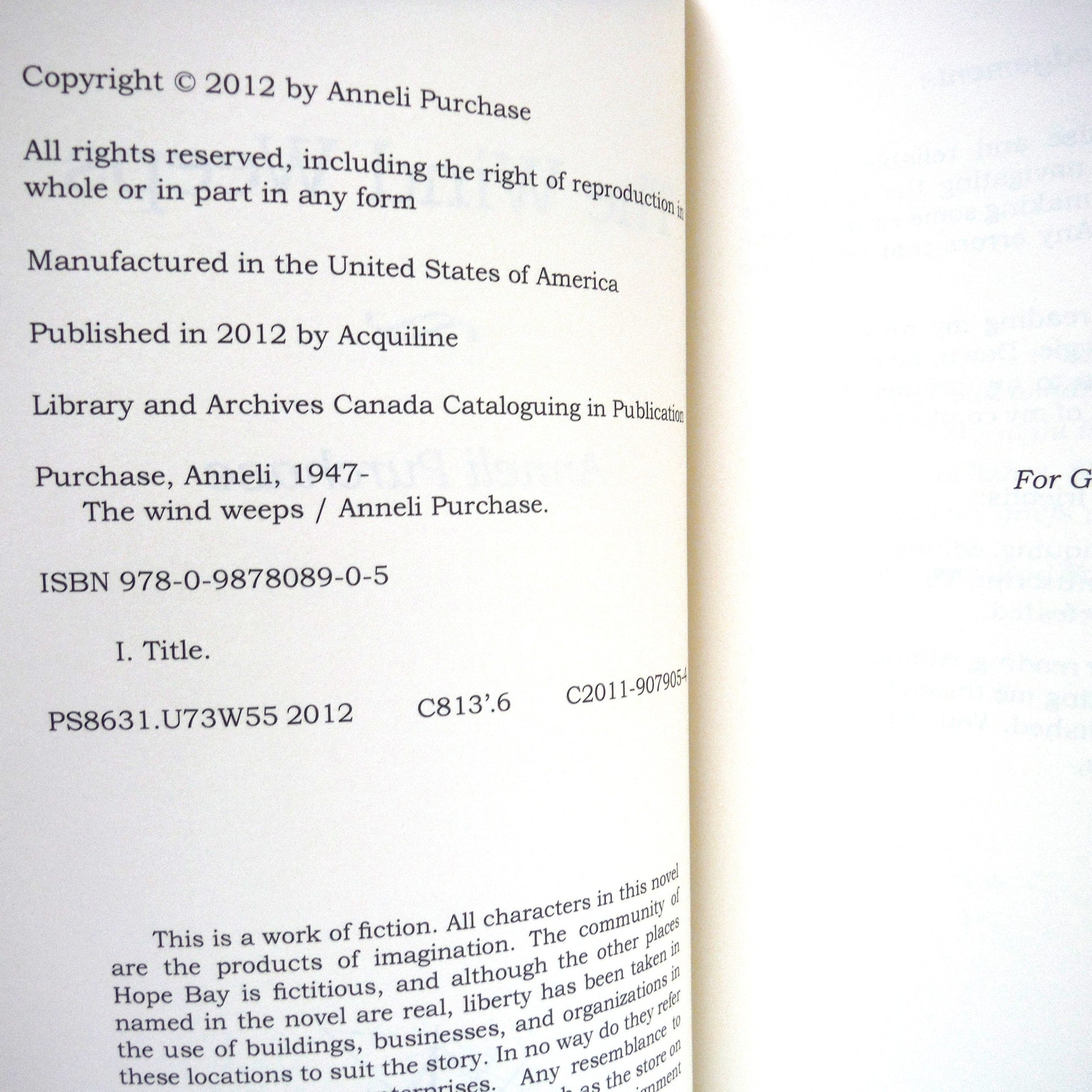 THE WIND WEEPS, is a pure Canadian tale of love, betrayal, and triumph, told with gusto, humour, and bold insight.