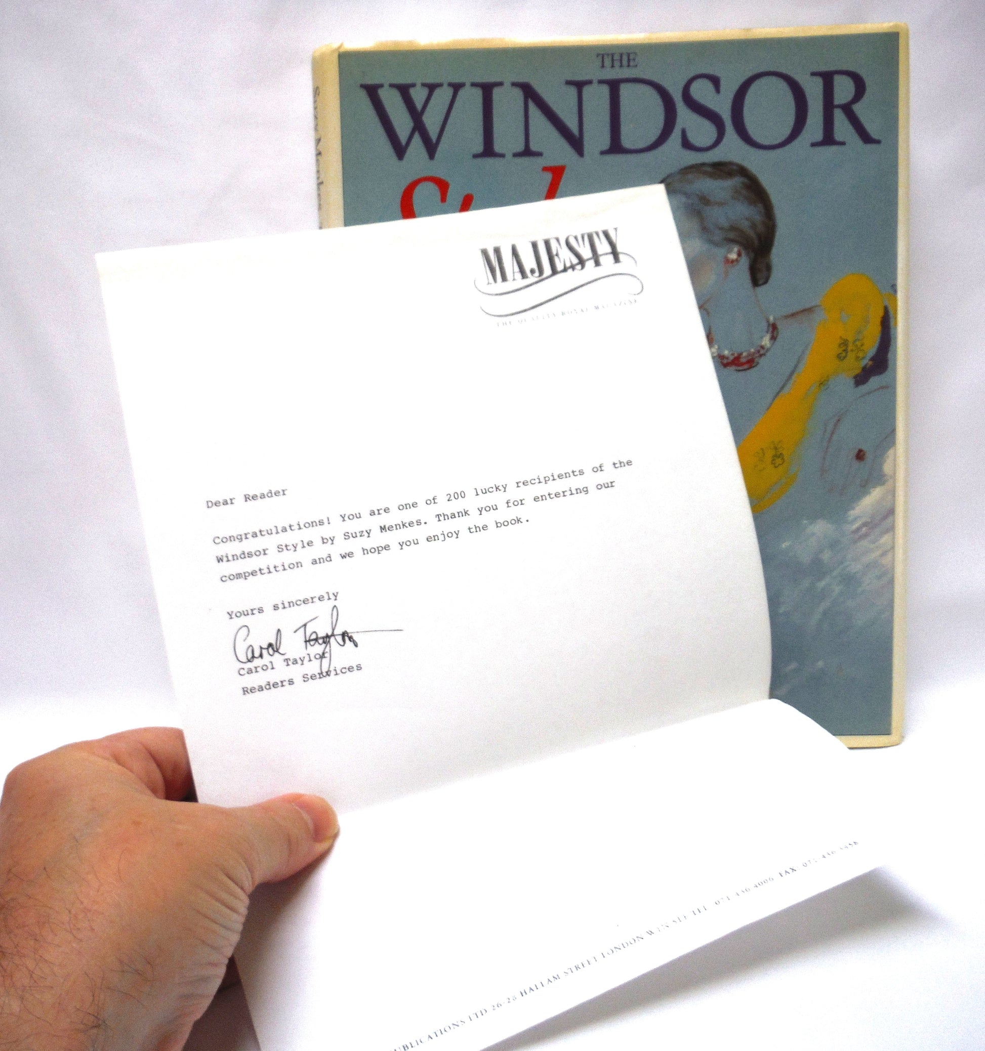 THE WINDSOR STYLE, by Suzy Menkes, with BONUS Majesty Magazine Winning Letter! (SIGNED 1st Ed.)