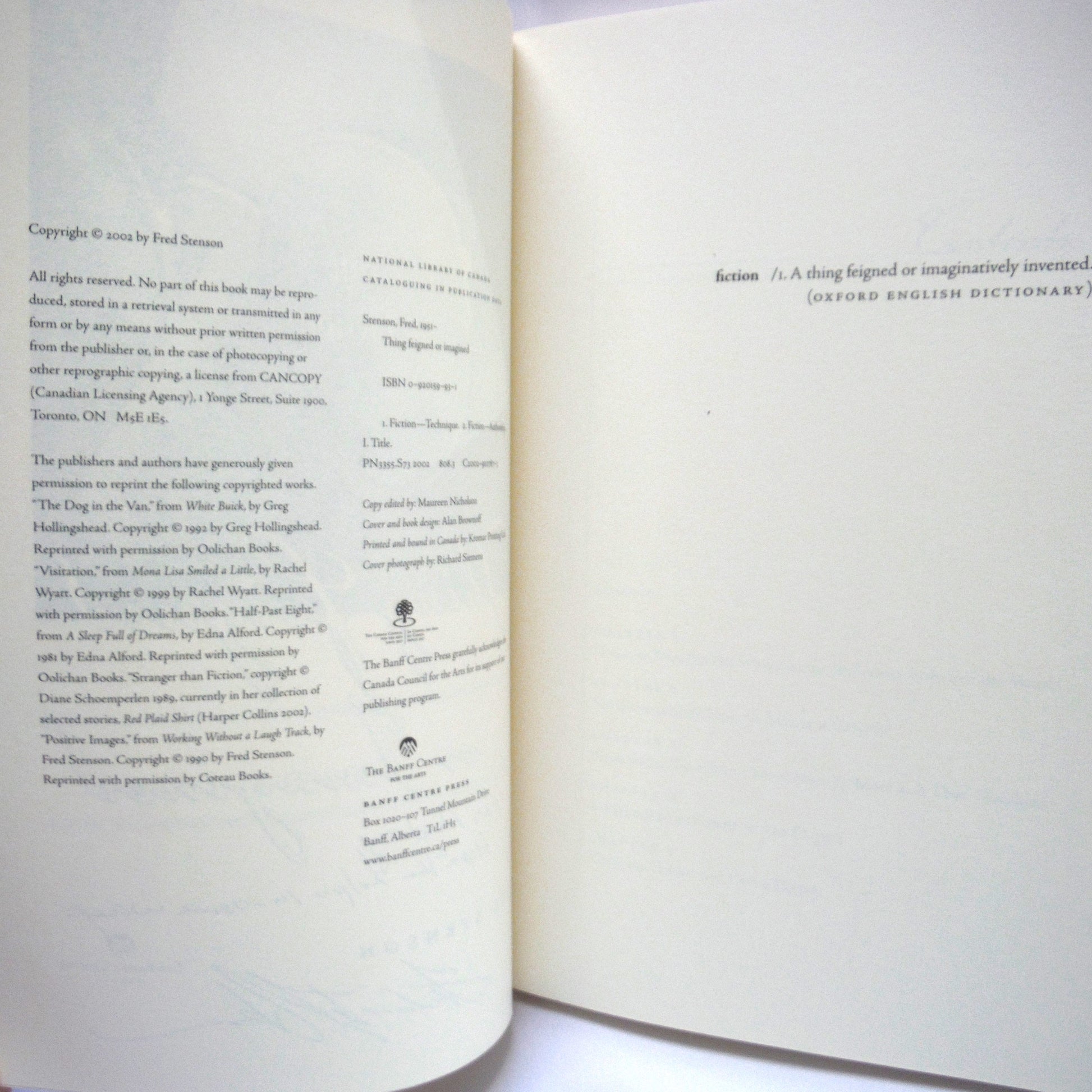 THING FEIGNED OR IMAGINED, The Craft in Fiction by Fred Stenson (1st Ed. SIGNED)