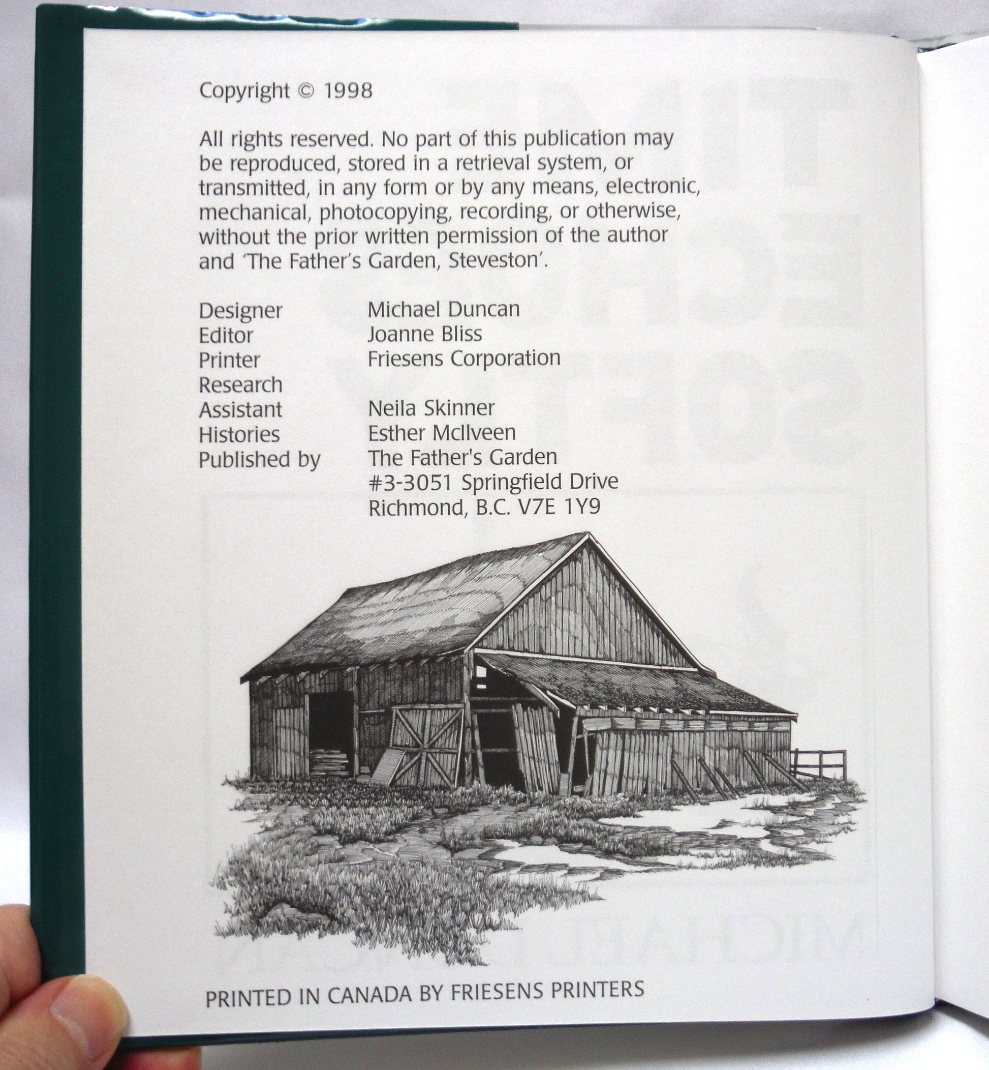 Author: Michael Duncan. Published by The Father's Garden, Richmond, BC., 1998, 1st Edition. Printed in Canada by Friesens. Like New Condition HARDCOVER Book and Dust Jacket. Clean inside, tight spine. Size: 9.25 x 8.25 inch.