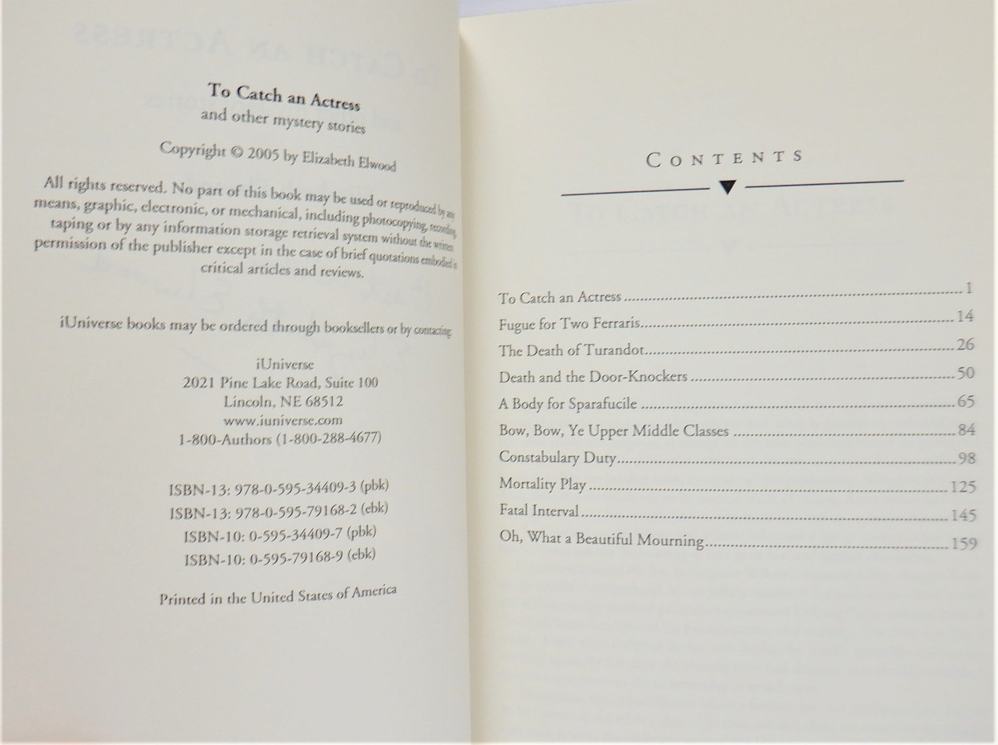 TO CATCH AN ACTRESS and Other Mystery Stories, is a new collection of short stories by Elizabeth Elwood, whose murder mystery play, Casting for Murder, produced in the year 2000, was based on the lead story in this anthology.