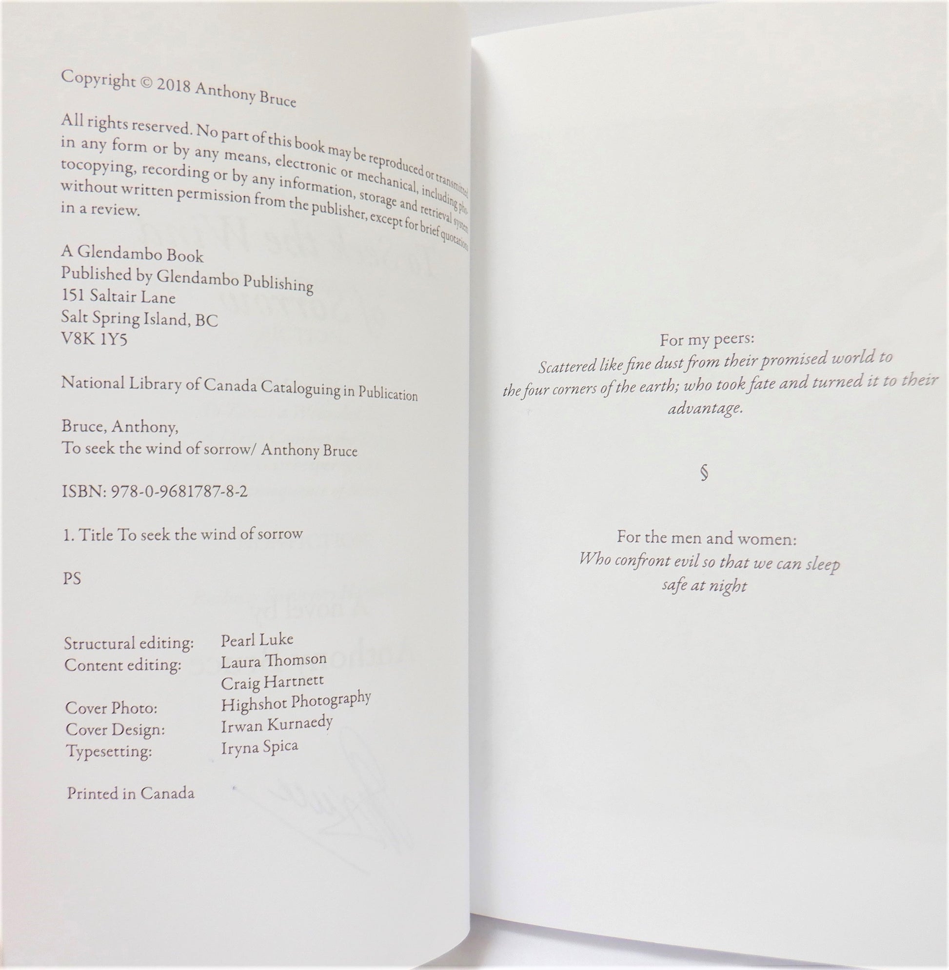 TO SEEK THE WIND OF SORROW, A New Thriller Novel by Anthony Bruce (1st Ed. SIGNED)