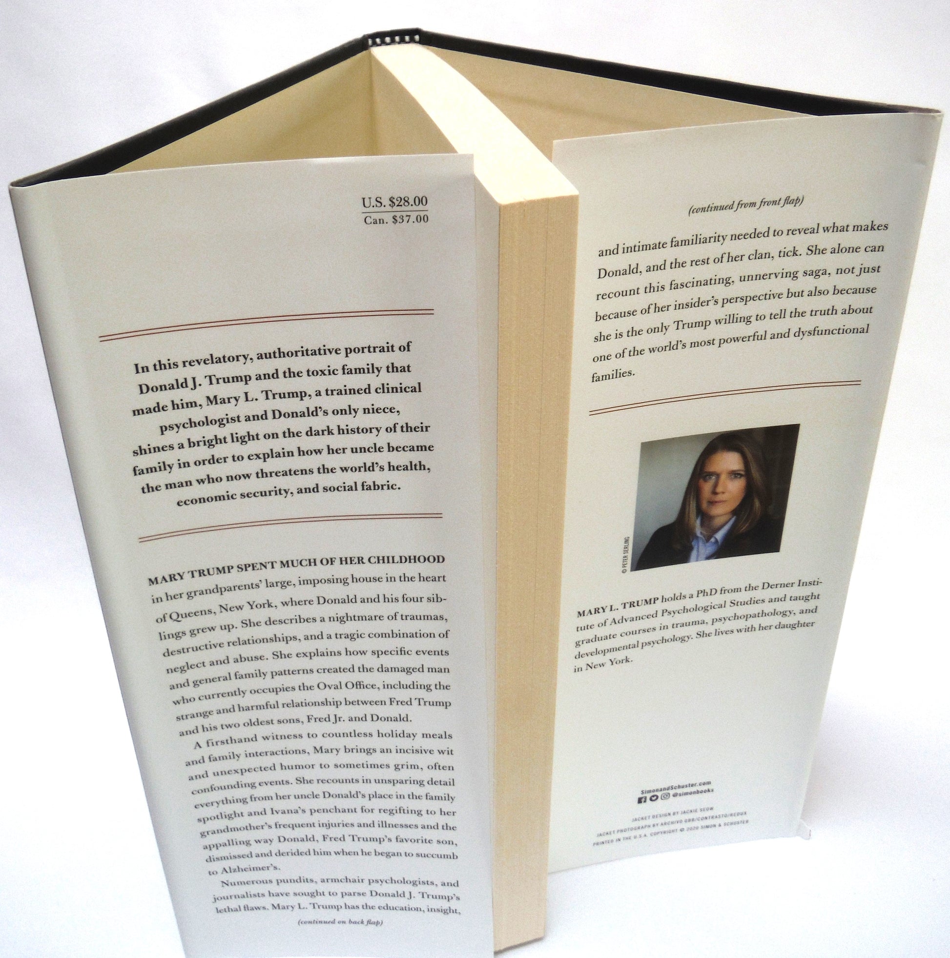Author: Mary L. Trump, PhD. Published by Simon and Schuster, New York, NY., 2020, 1st Edition. Printed in Canada. Like New Condition HARDCOVER Book. Almost New Condition Dust Jacket, with a tiny tear on lower back corner. (Please see pics) Clean inside, tight spine. Size: 9.25 x 6.25 inch, 225 pages including index.