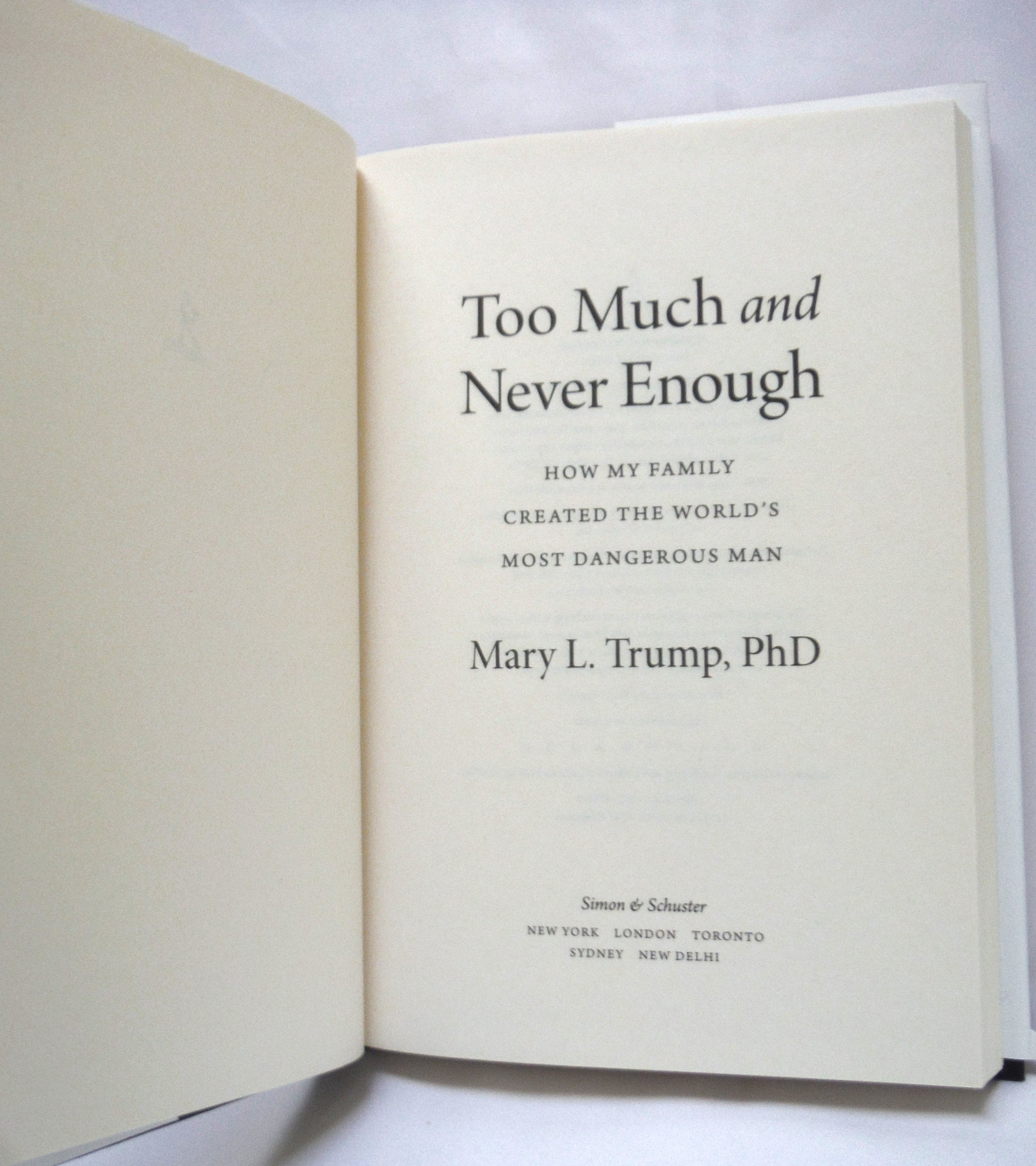 TOO MUCH and NEVER ENOUGH, How My Family Created The World's Most Dangerous Man, by Mary L. Trump (2020 1st Ed.)