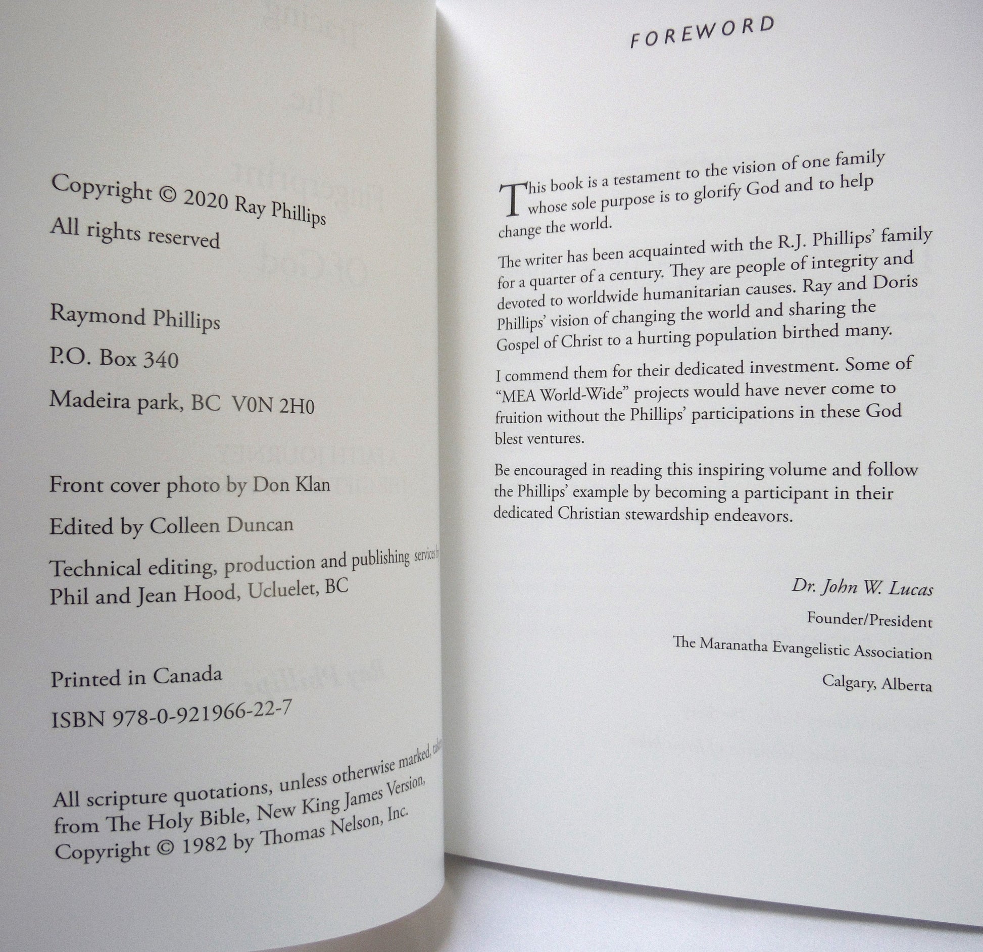 TRACING THE FINGERPRINT OF GOD, is the true story of Ray Phillips and his wife Doris, as they travelled from Vancouver Island, British Columbia, after retiring from commercial fishing to pursue an active interest in supporting Missions at home and overseas.