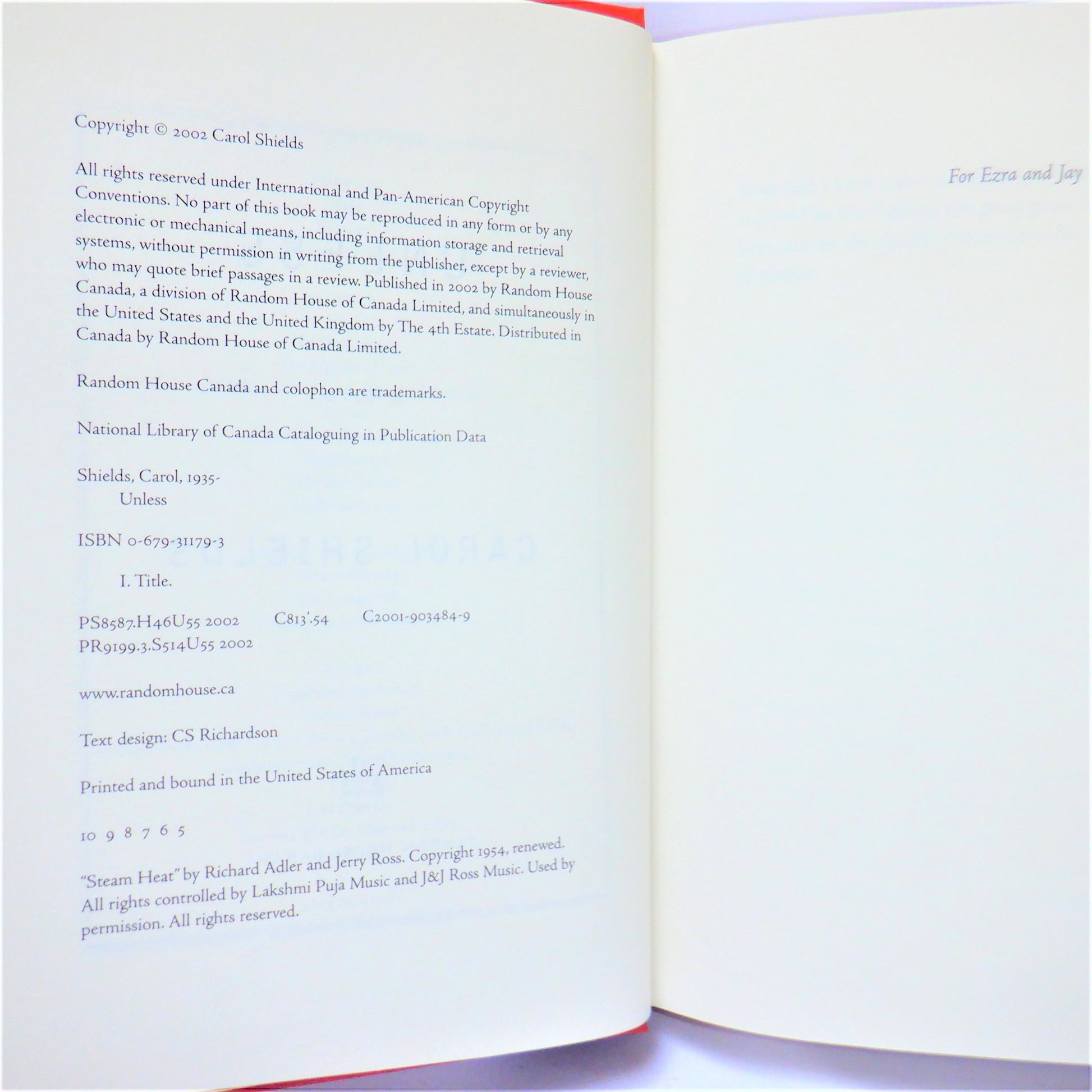 UNLESS, A Novel by Carol Shields (2002 1st Ed.)