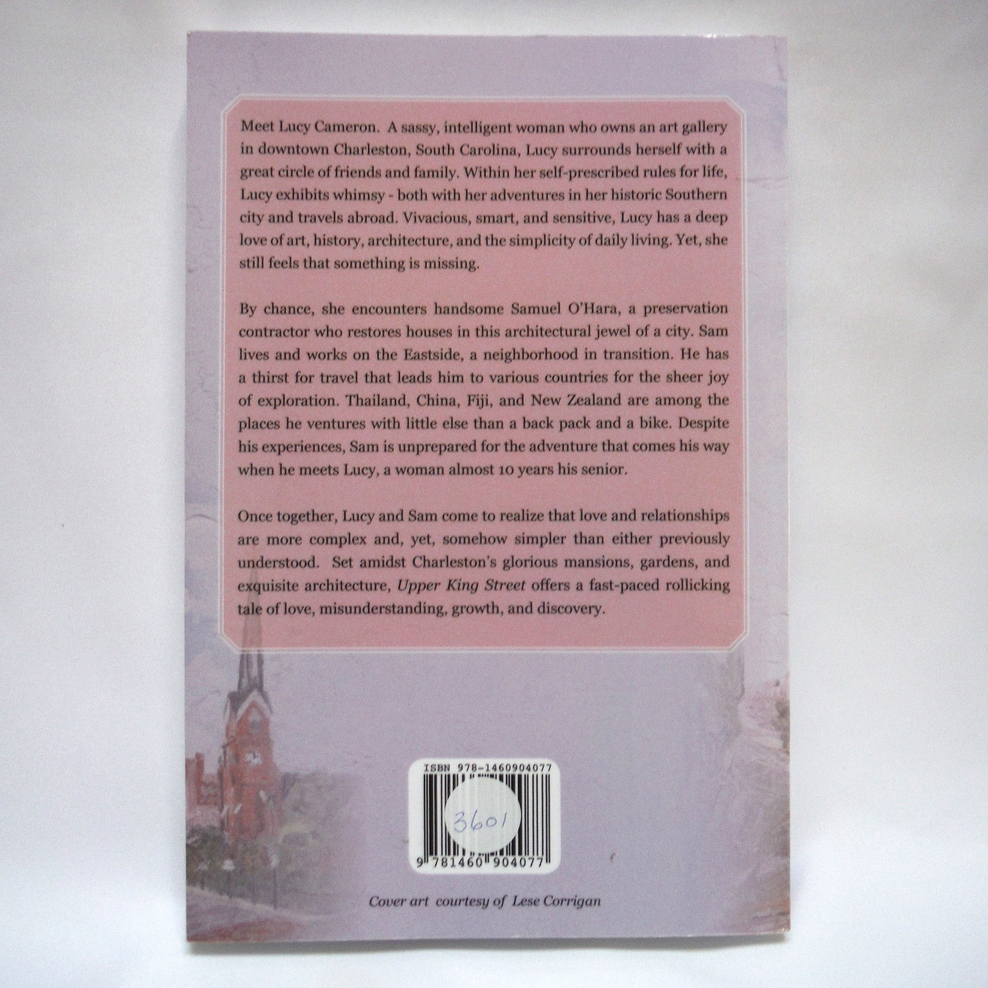 Meet Lucy Cameron. A sassy, intelligent woman who owns an art gallery in downtown Charleston, South Carolina, Lucy surrounds herself with a great circle of friends and family. Within her self-prescribed rules for life, Lucy exhibits whimsy - both with her adventures in her historic Southern city and travels abroad. Vivacious, smart, and sensitive, Lucy has a deep love of art, history, architecture, and the simplicity of daily living. Yet, she still feels that something is missing. By chance, she encounters handsome Samuel O'Hara, a preservation contractor who restores houses in this architectural jewel of a city. Set amidst Charleston's glorious mansions, gardens, and exquisite architecture, Upper King Street offers a fast-paced rollicking tale of love, misunderstanding, growth, and discovery.