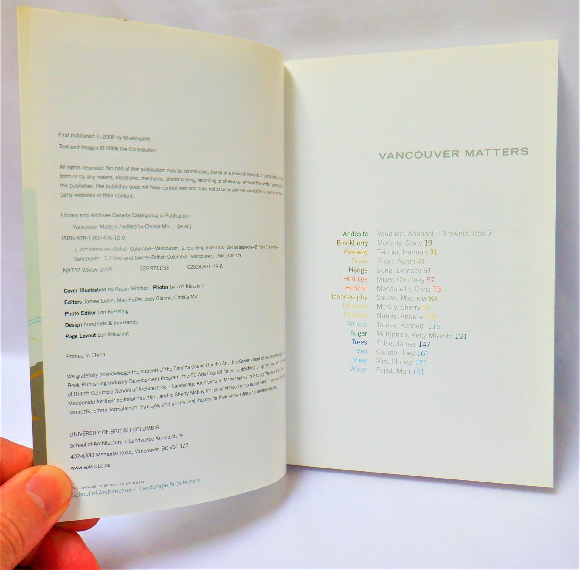VANCOUVER MATTERS, Collected Essays & Photographs on Vancouver's Future, Edited by Christa Min, Lori Kiessling, Joey Giaimo, Mari Jujita, and James Eidse. (2008 1st Ed.)