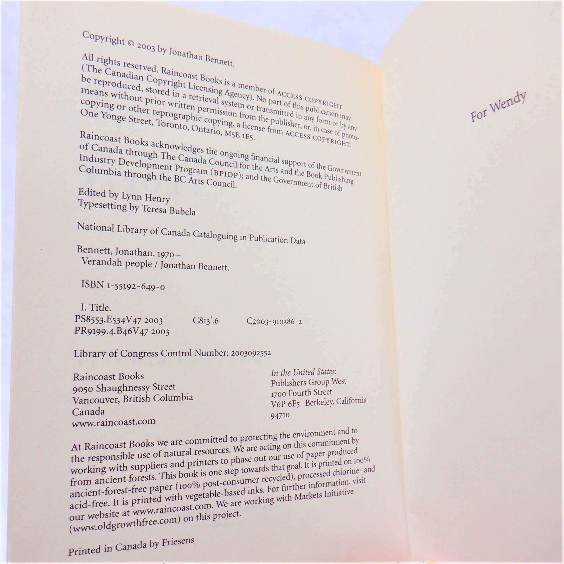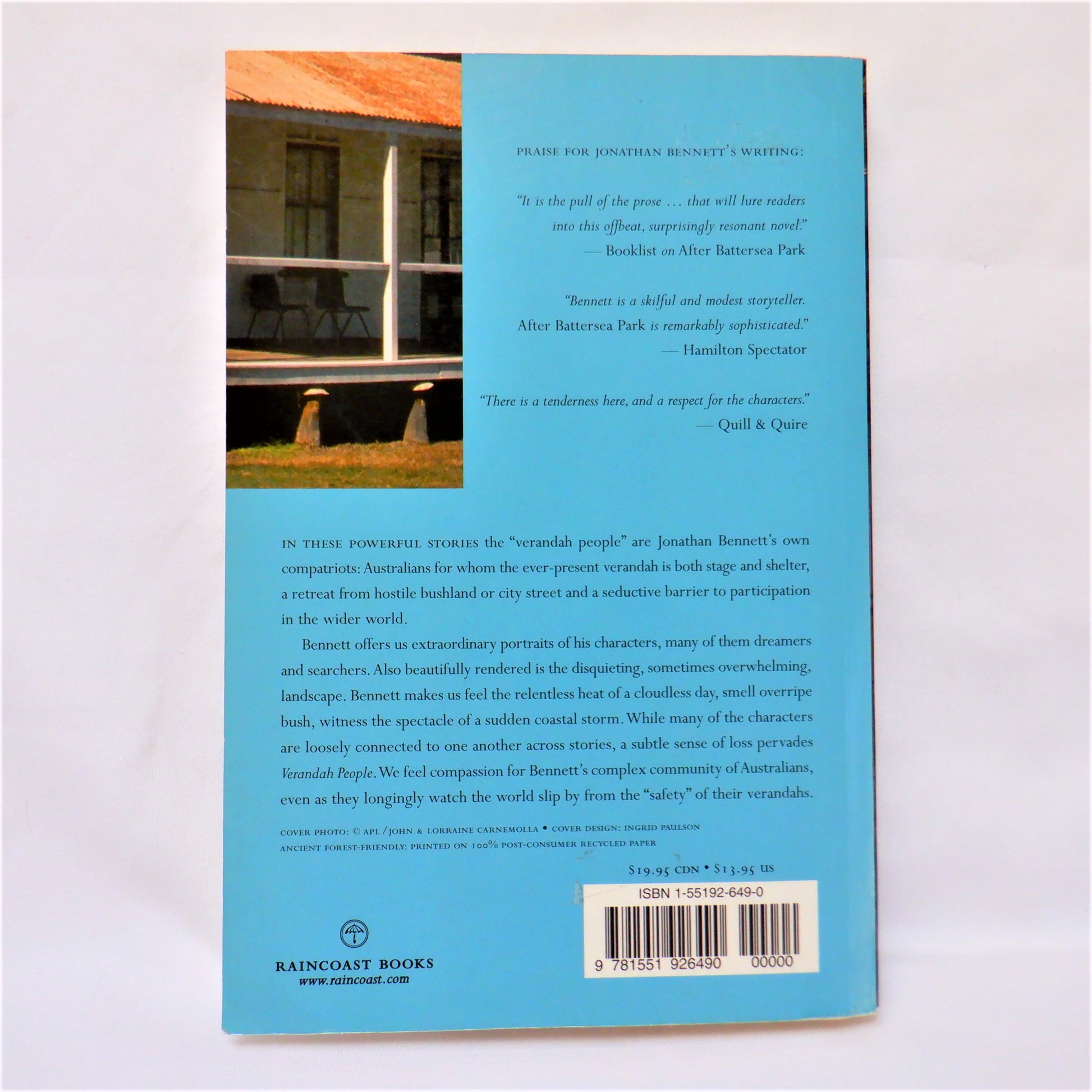 VERANDAH PEOPLE, are powerful stories that are Jonathan Bennett's own compatriots: Australians, for whom the ever-present verandah is both stage and shelter, a retreat from hostile bushland or city street and a seductive barrier to participation in the wider world.