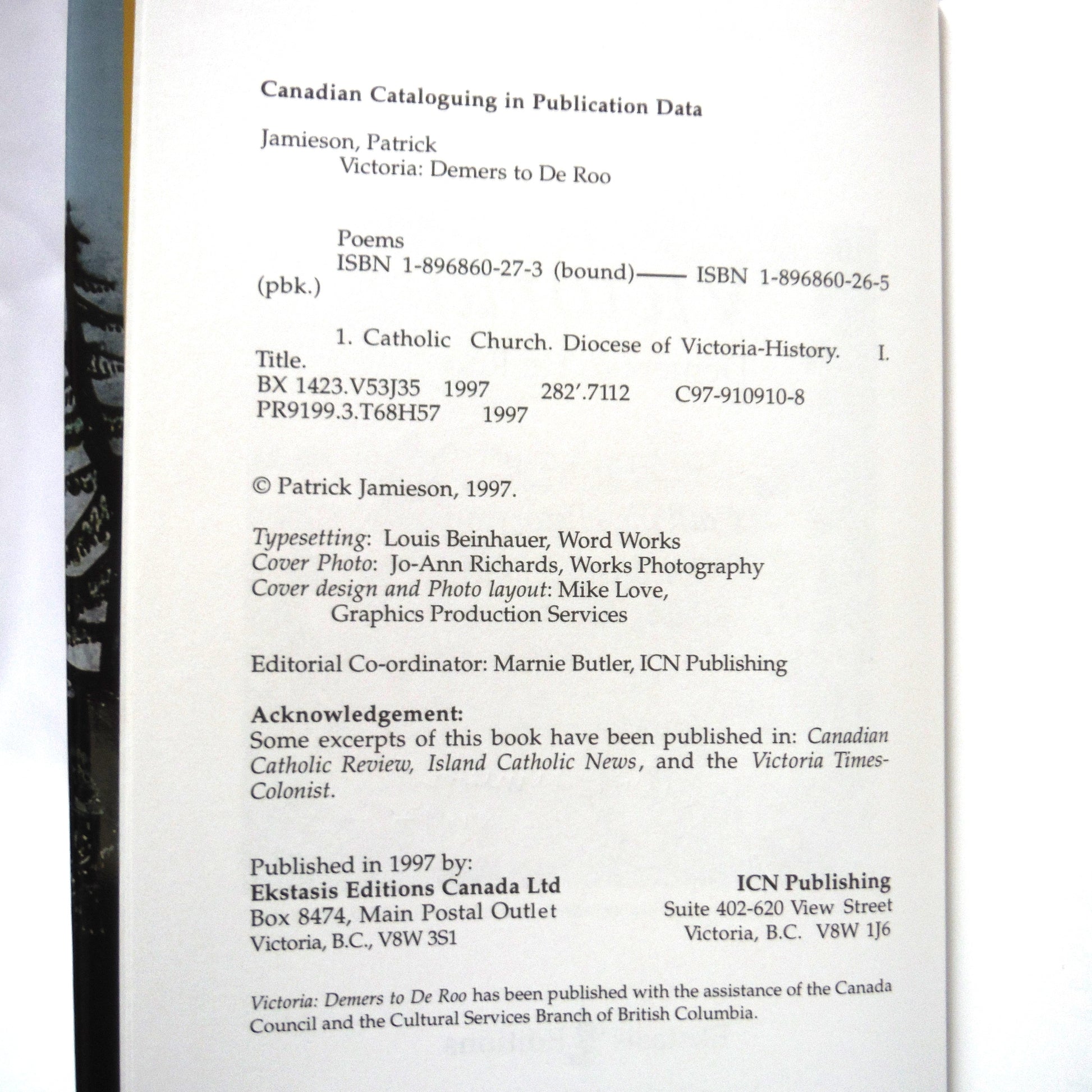 In VICTORIA: DEMERS to DE ROO, Jamieson evokes the first 150 years of the Diocese of Victoria with a sensitivity for the symbolic, an eye for patterns and an ear for the rhythmic repetitions of history.