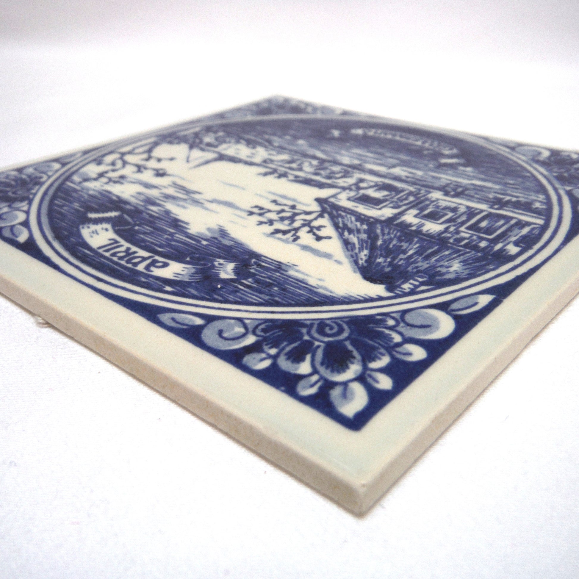 Vintage Delft Blue Square Small Wall Tile: Entitled APRIL - GRASMAAND, Made in Holland