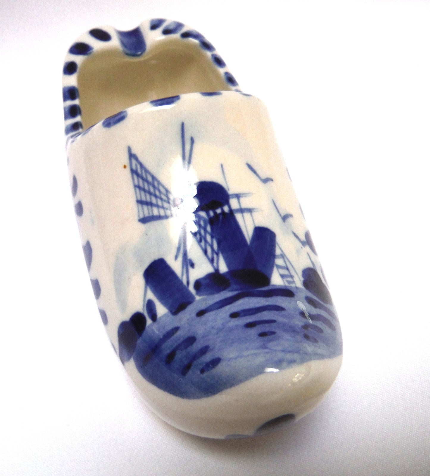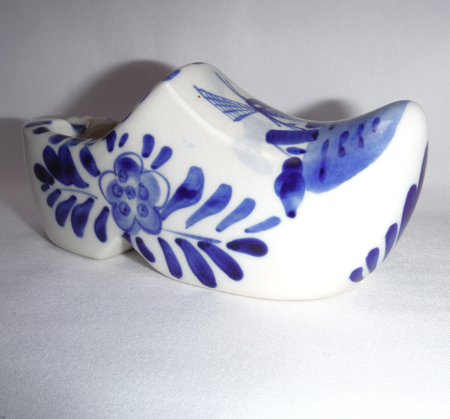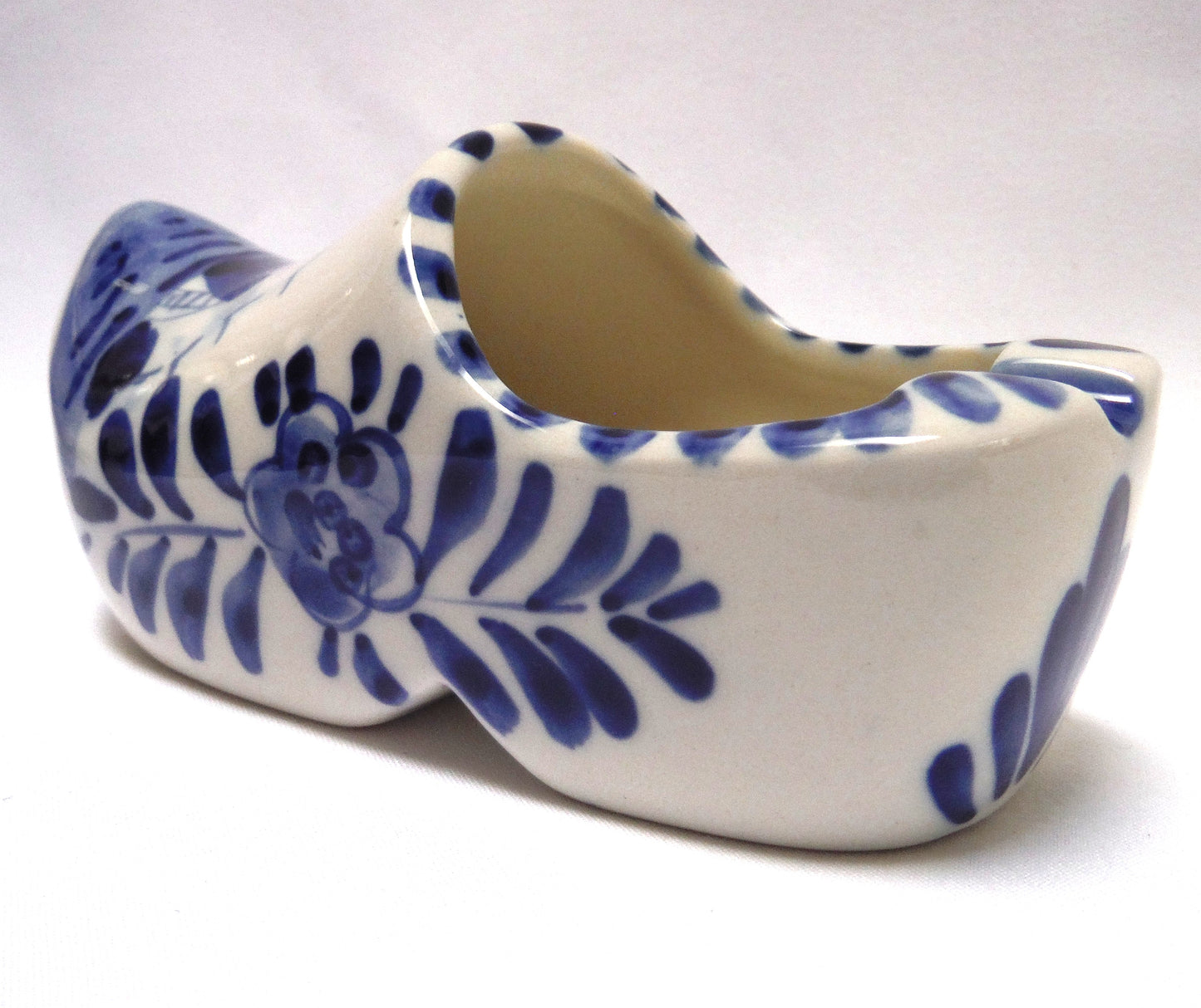 A Vintage Hand Painted Delfts Blue Ashtray, designed in the TRADITIONAL HOLLAND DUTCH SHOE. Condition is very good, with no chips or cracks, doesn't seem to have been used. Made in Holland.ย