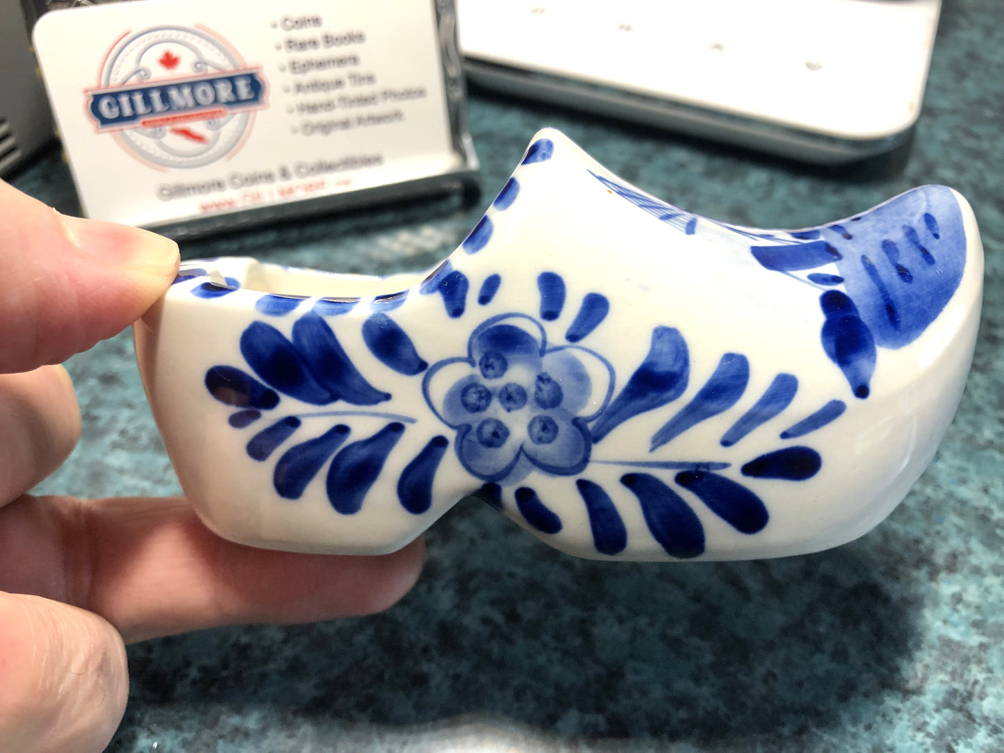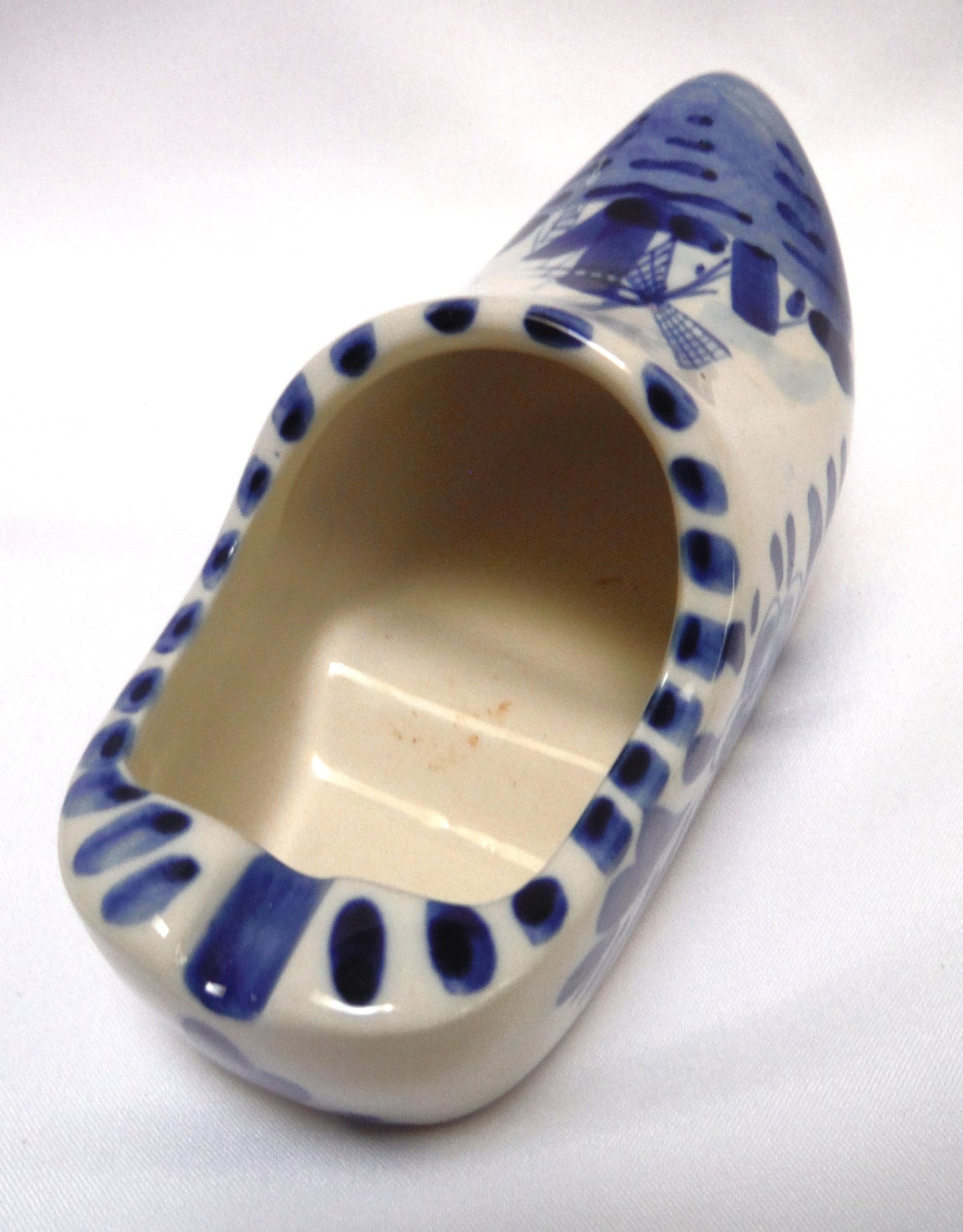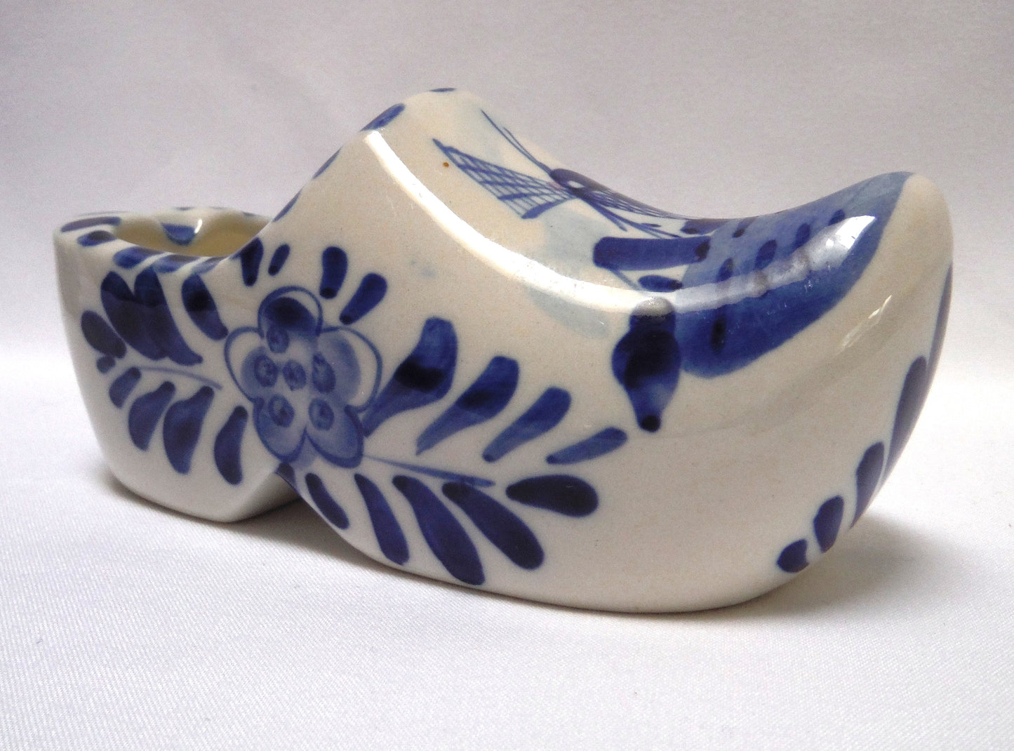 A Vintage Hand Painted Delfts Blue Ashtray, designed in the TRADITIONAL HOLLAND DUTCH SHOE. Condition is very good, with no chips or cracks, doesn't seem to have been used. Made in Holland.ย