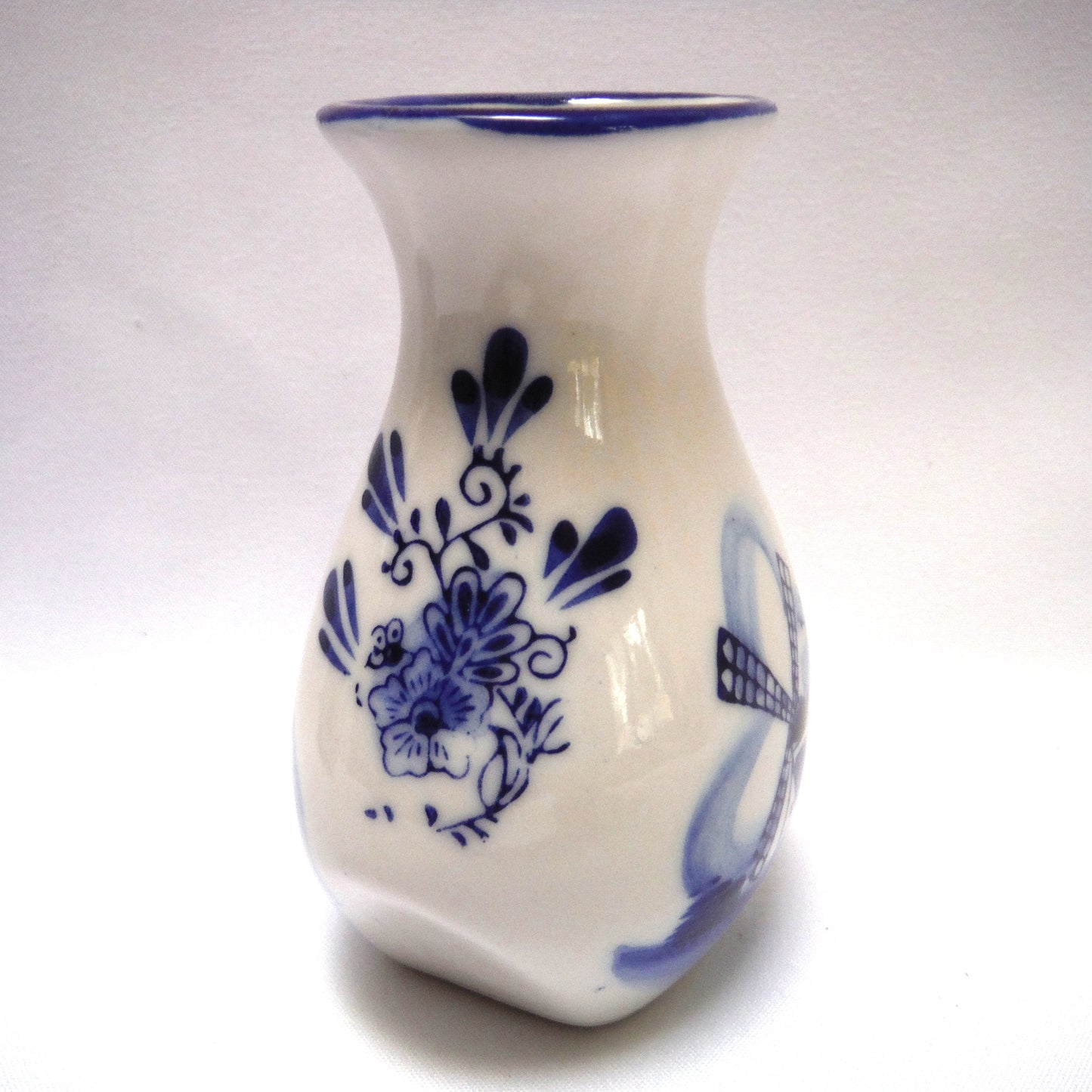 Vintage Hand Painted Delfts Blue Miniature VASE, with Windmill Country Scene