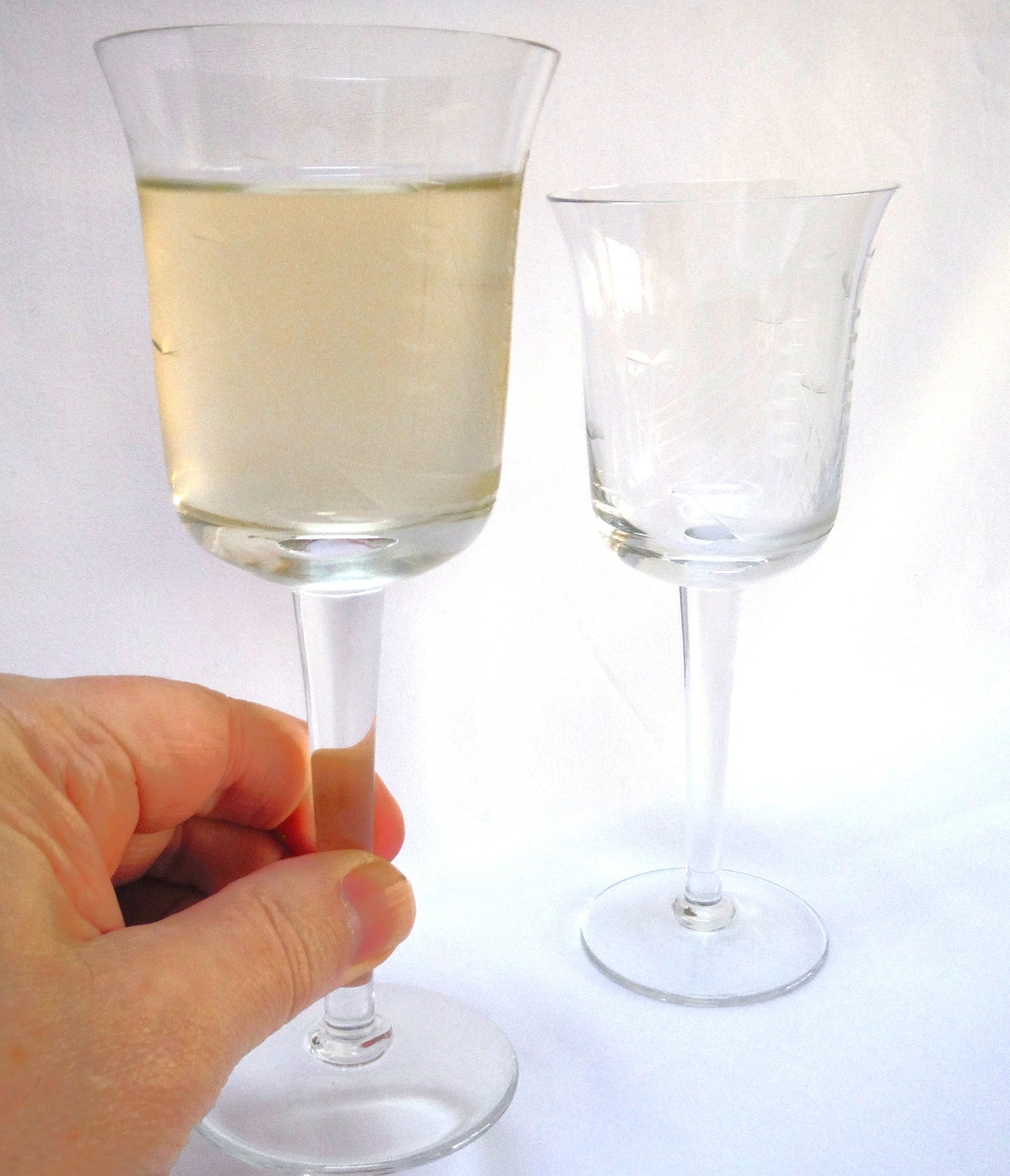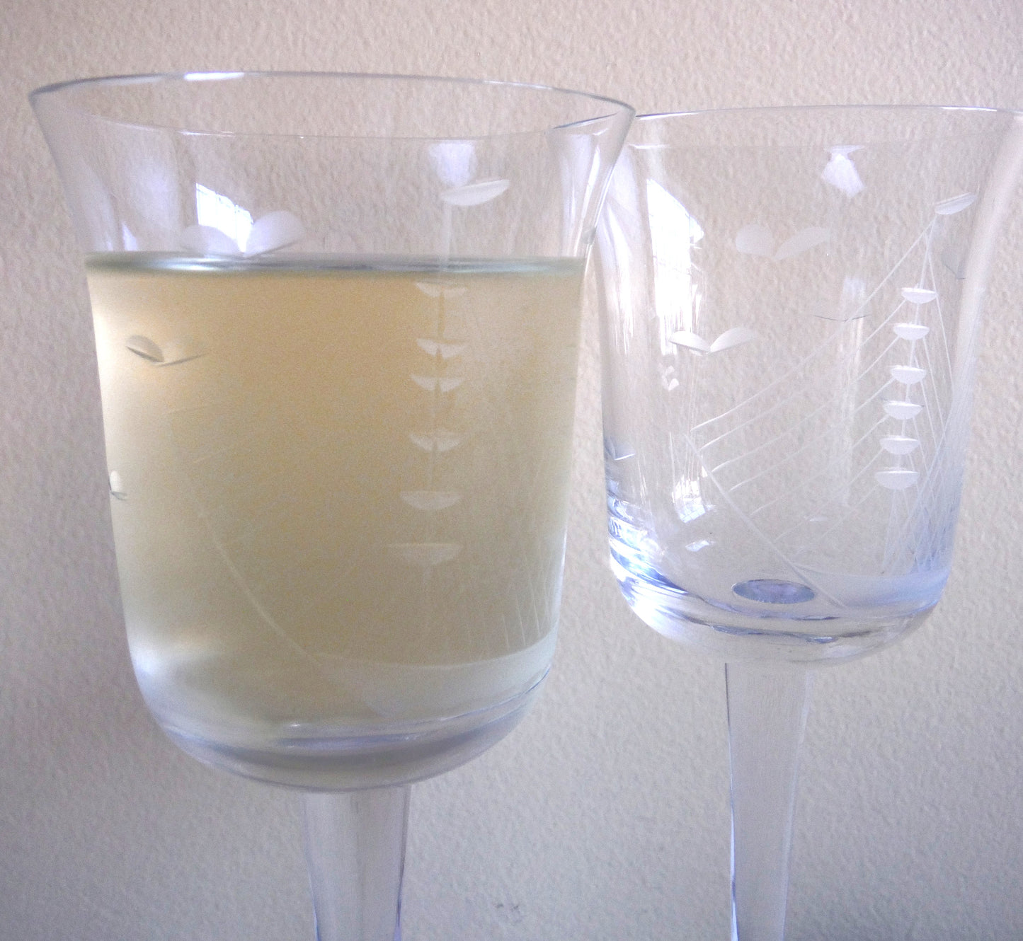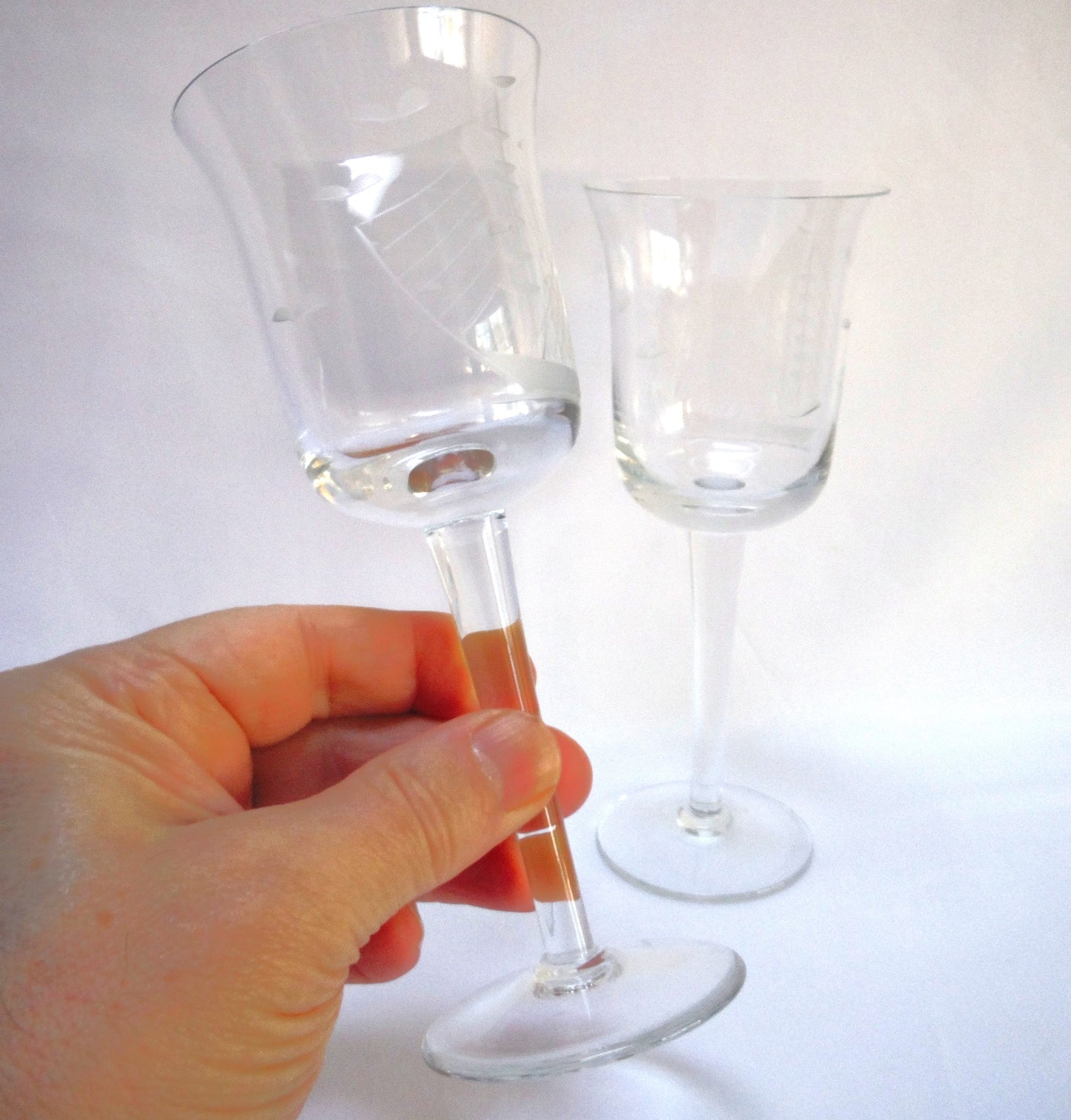 Vintage Pair of Glass Etched TALL WINE GLASSES: 'The Two-Mast Sailing Ship'