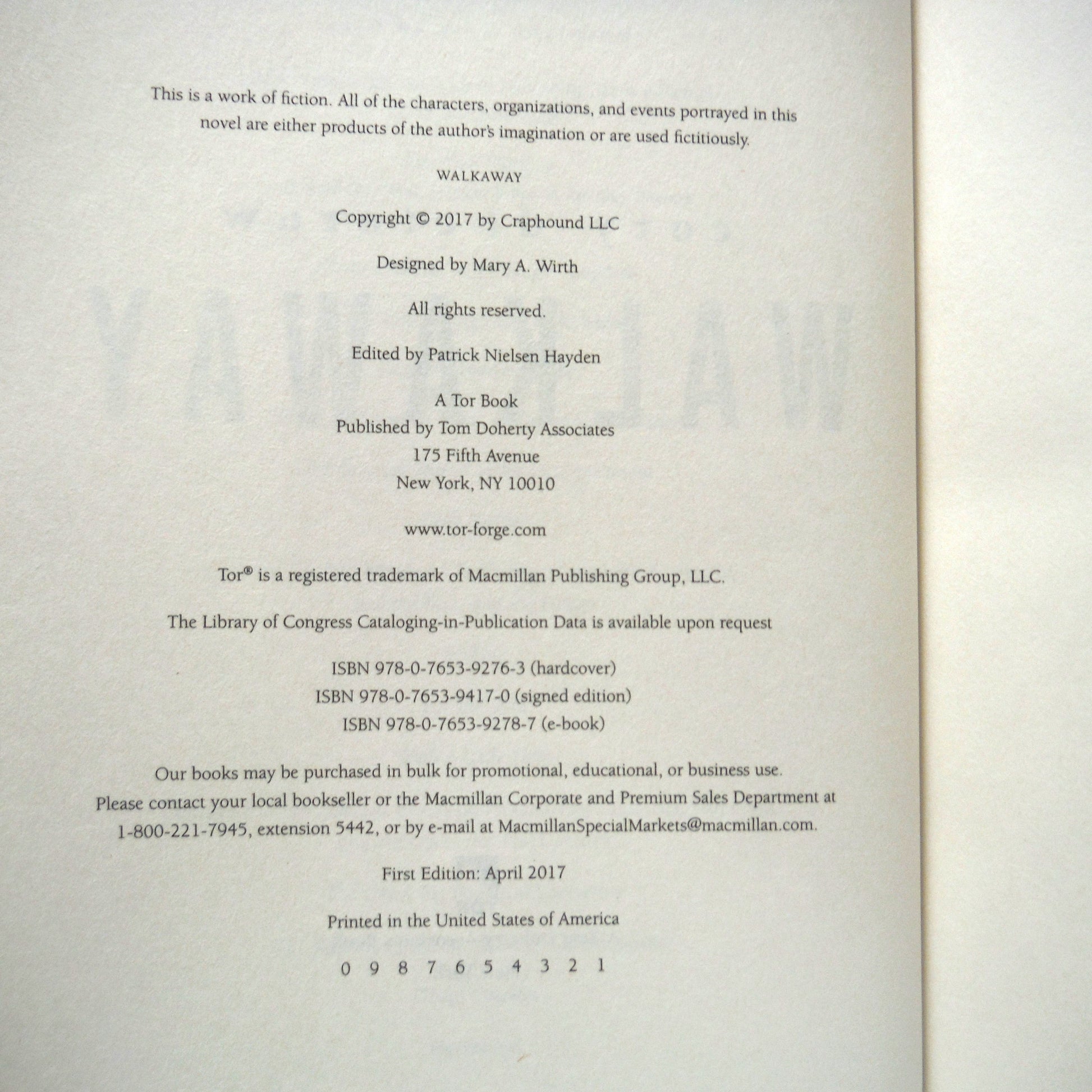 WALKAWAY, A Novel by Cory Doctorow (2017 1st Ed.)