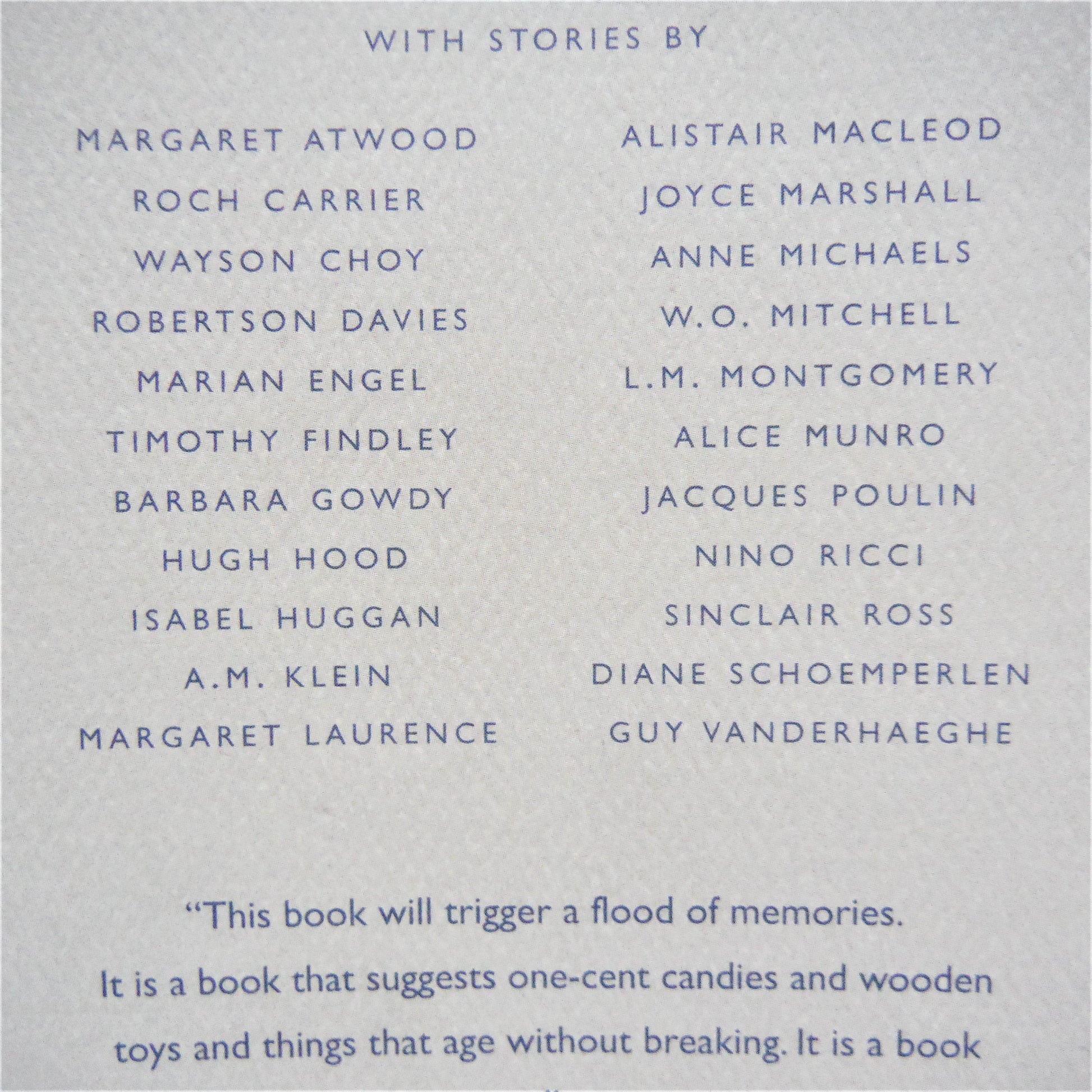 "One story, for example, was Roch Carrier's The Hockey Sweater. It was soooo different to read that NOT in the picture book format. There was a chapter from Anne of Green Gables, which I loved because... Anne! There was short stories by Margaret Laurence and Alice Munro which were divine! A chapter from Atwood's Cat's Eye, which I have not read, and now I really want to because that chapter was fantastic (and held up in a stand-alone format). The last chapter was an author named Hugh Hood, which I was unfamiliar with, and honestly, it took me 3 days to get through his chapter. I do highly recommend this book, it is a really awesome synopsis of nostalgic Canadiana." -Reviewed by Cynthia on Goodreads