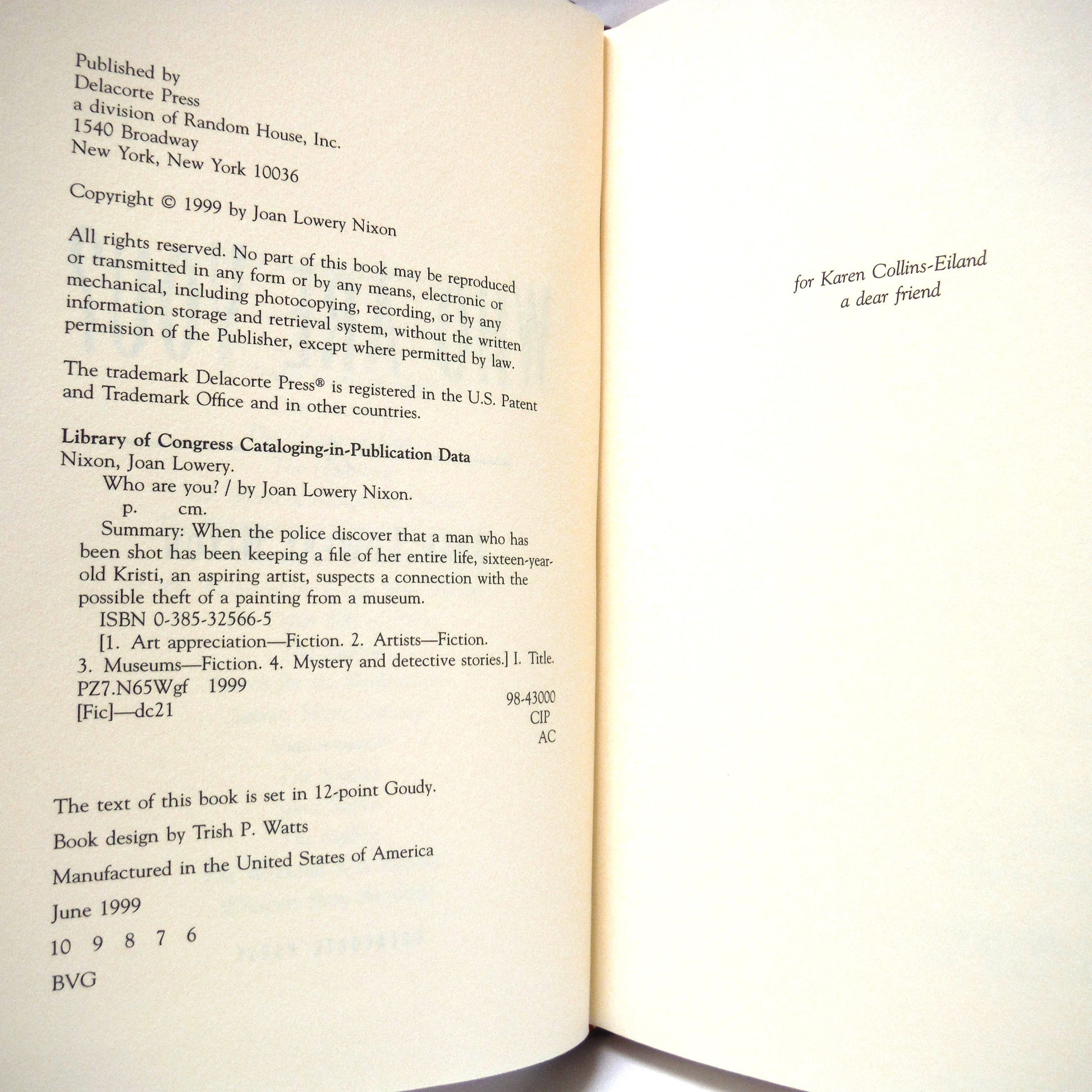WHO ARE YOU? A Young Reader Mystery Novel, by Joan Lowery Nixon (1999 1st Ed.)