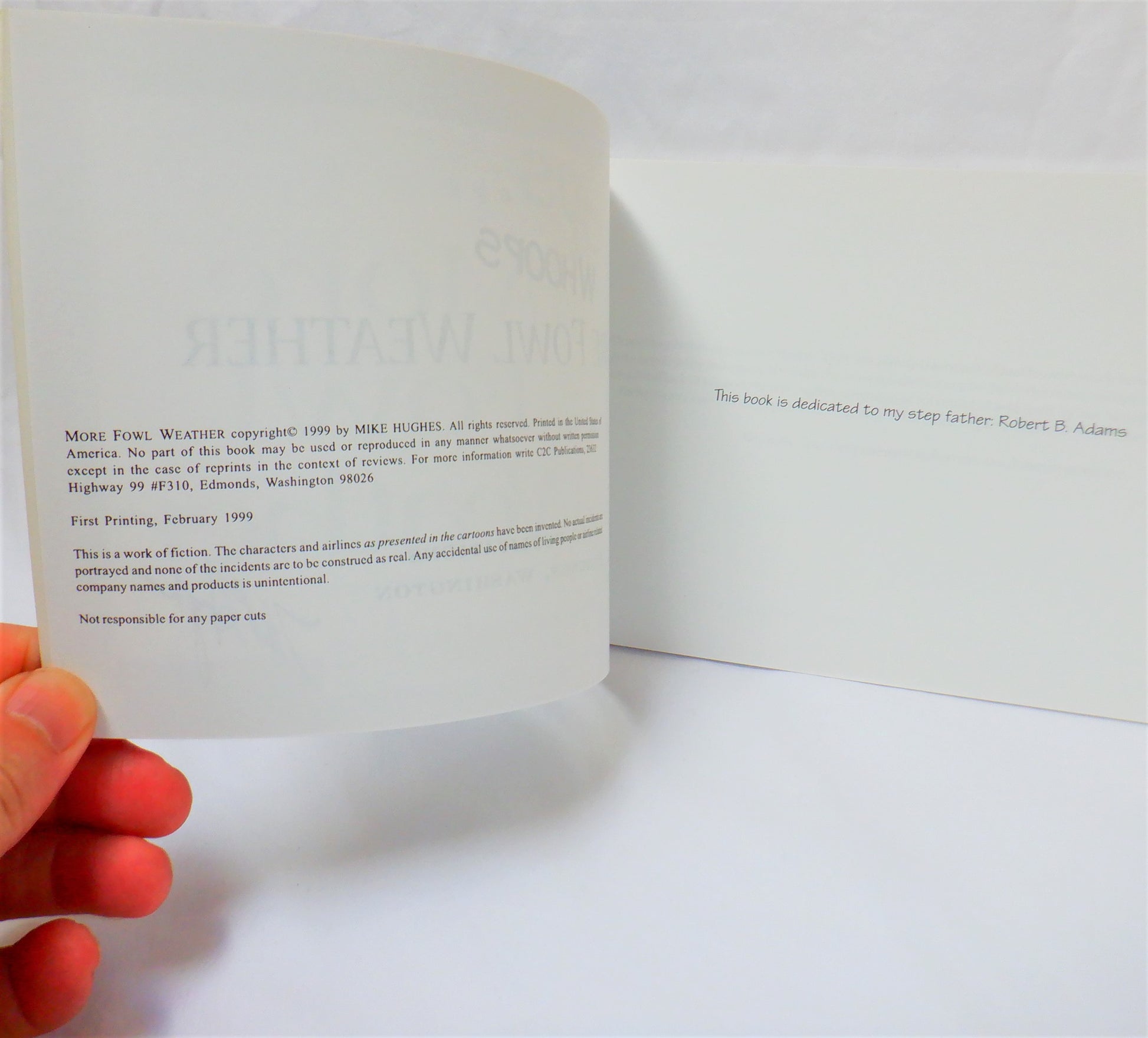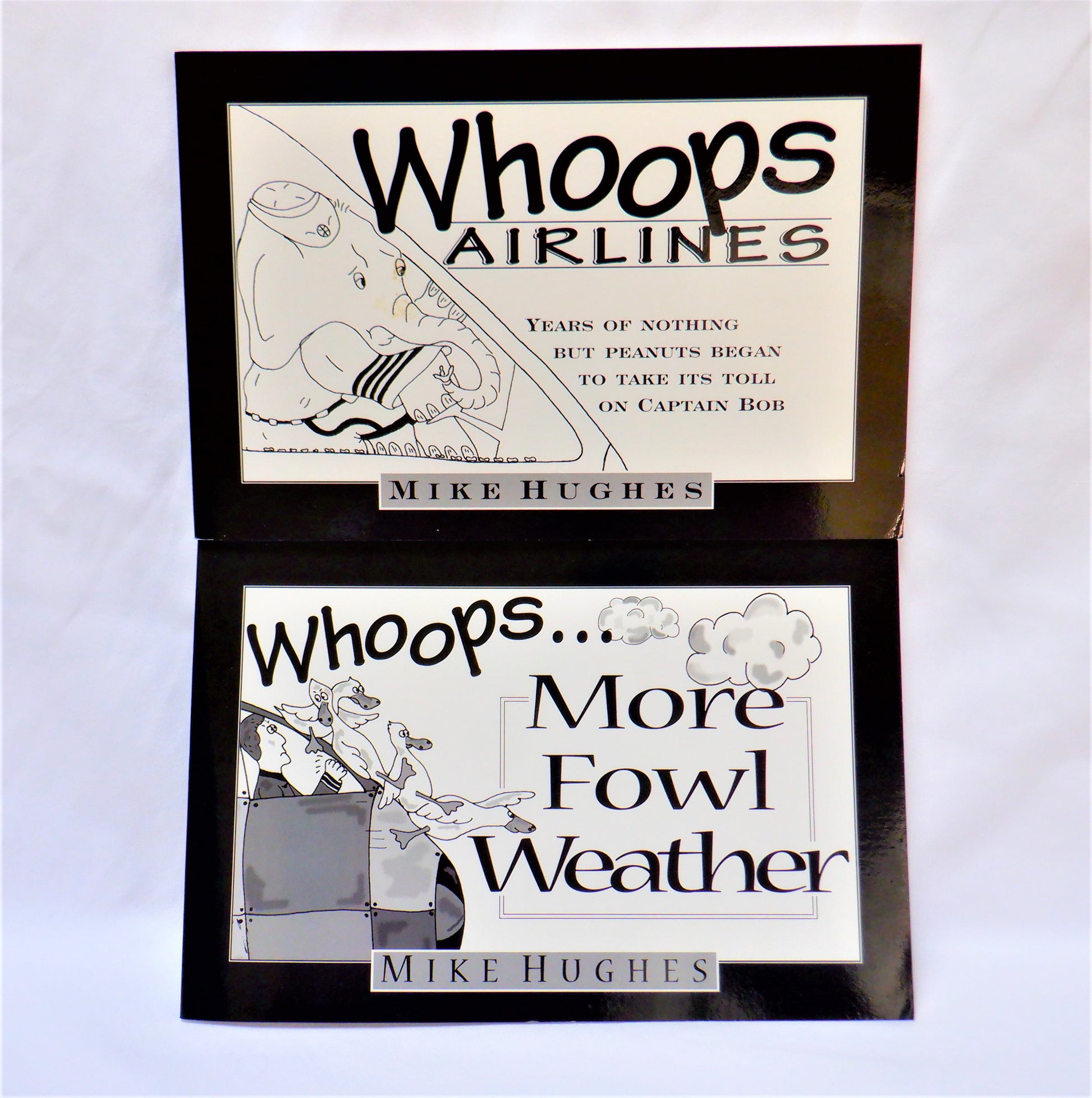 THIS IS A RARE PAIR OF 1st Edition FLAT SIGNED BOOKS BY MIKE HUGHES…1998 Whoops Airlines & 1999 Whoops More Fowl Weather! Price is for BOTH books.