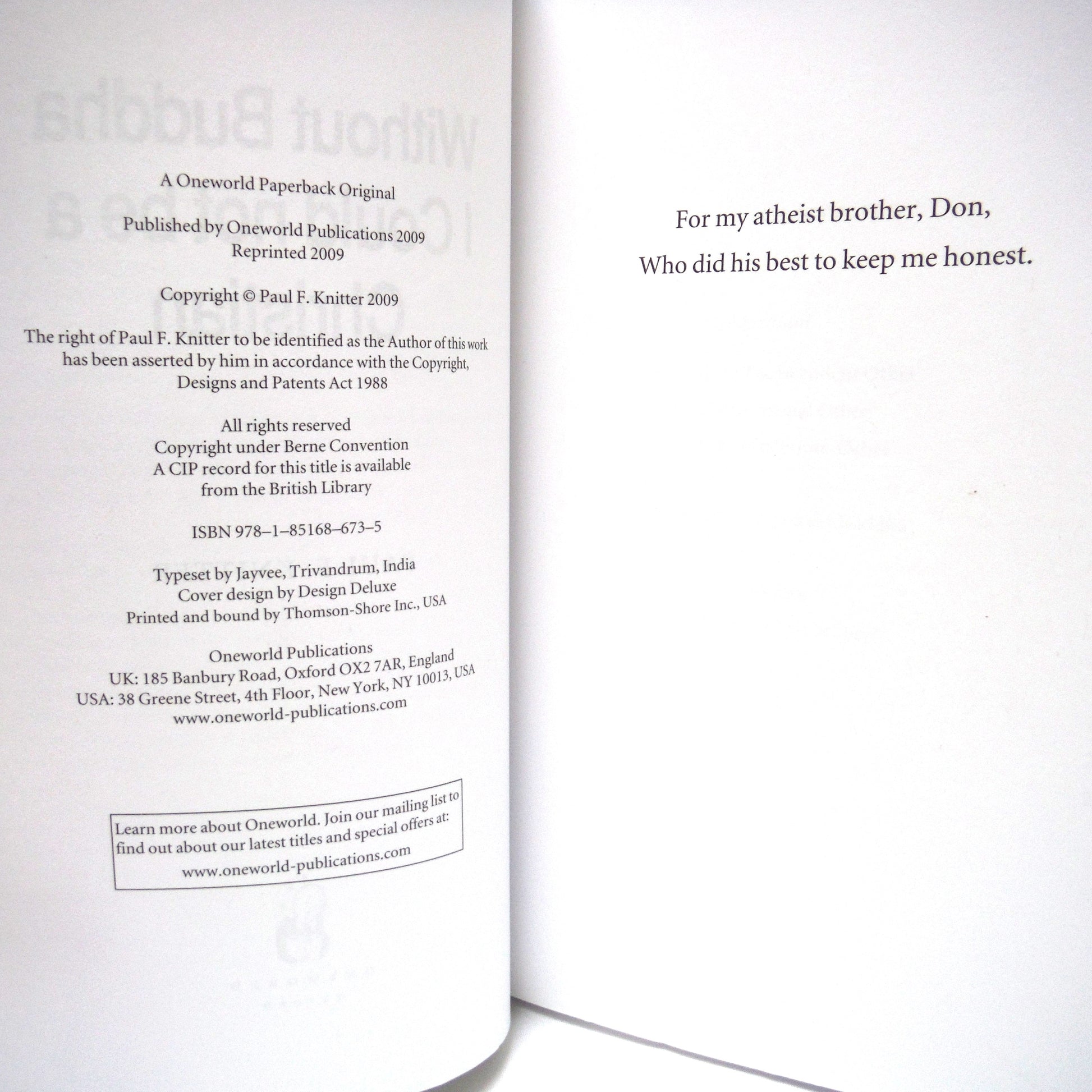 WITHOUT BUDDHA I COULD NOT BE A CHRISTIAN, by Paul F. Knitter (2009 1st Ed.)
