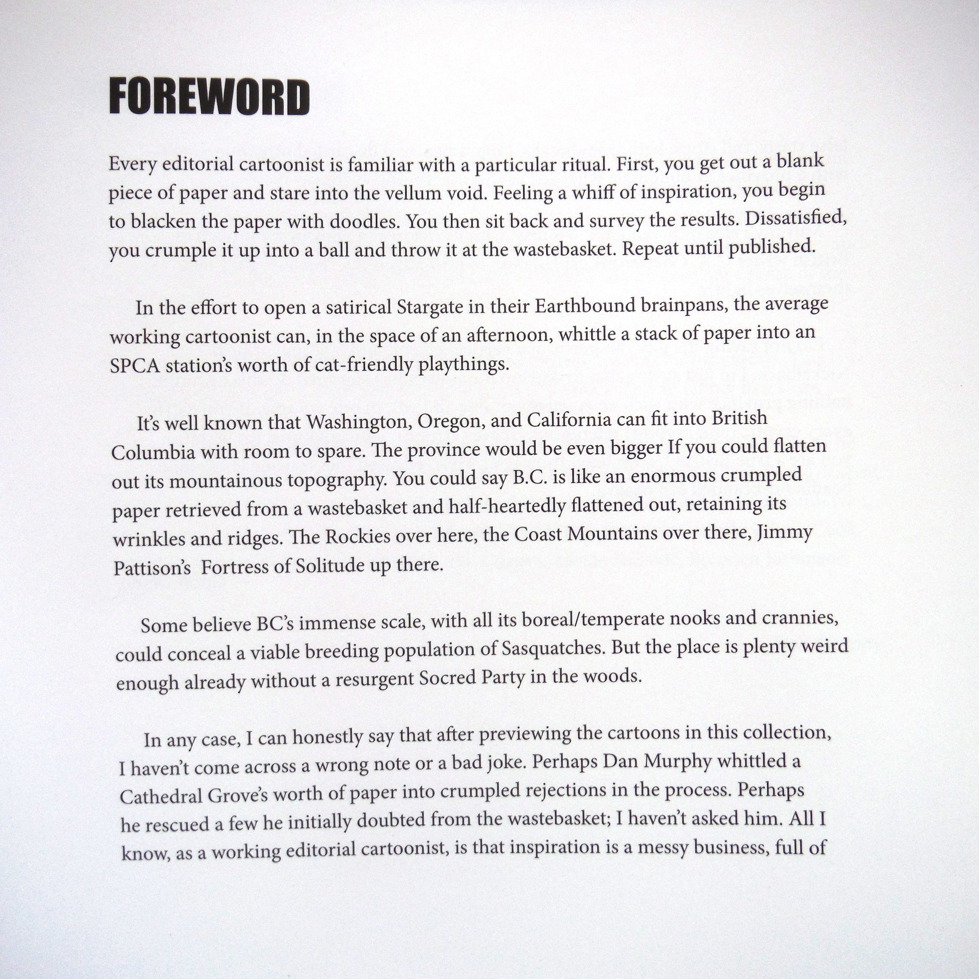 As Murphy proves, this is a province that is proud of who it is and likes nothing better than a good laugh. Dan Murphy is a cartoonist and writer who produced political cartoons, editorials, graphics, page-design, web-animations, and the Sunday illustrated column Mr. Pundit over the course of a 29-year stint at The Province newspaper. His work has won a Western Magazine Award and appeared in Maclean's, Equity, Vancouver magazine, B.C. Business, Condé Nast Traveller, Omni, Penthouse, The Western Voice, and Surfer.