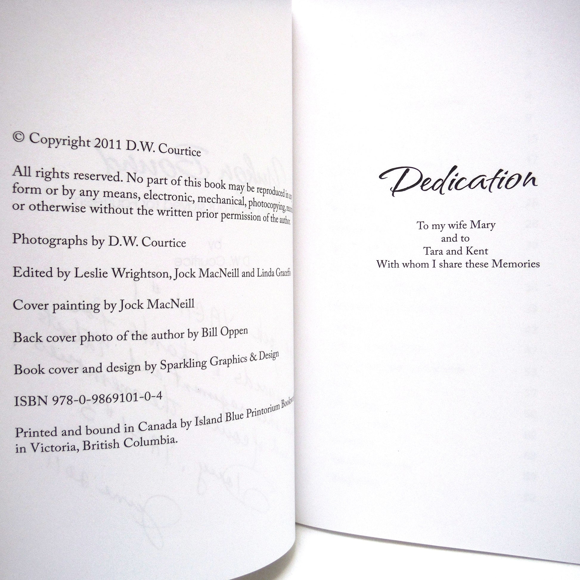 Author: D.W. Courtice. Published by D.W. Courtice, 2011, 1st Edition. SIGNED, dedicated and dated by the Author. Printed in Canada by Island Blue Printorium, Victoria, BC. Like New Condition SOFTCOVER Book. Clean inside, tight spine. Size: 9 x 6 inch, 95 pages.