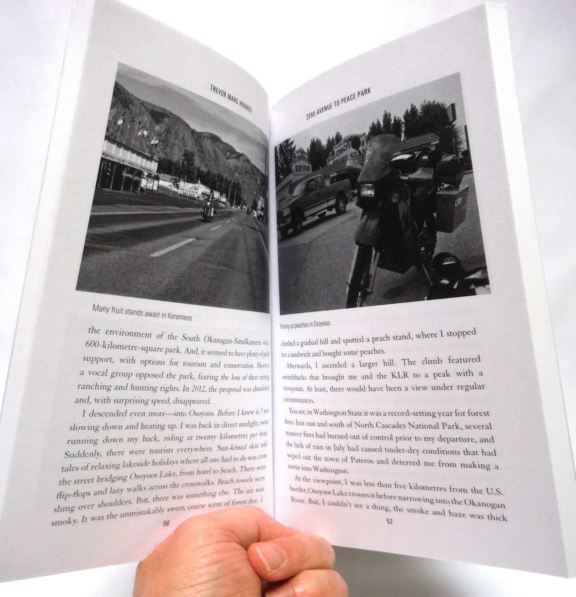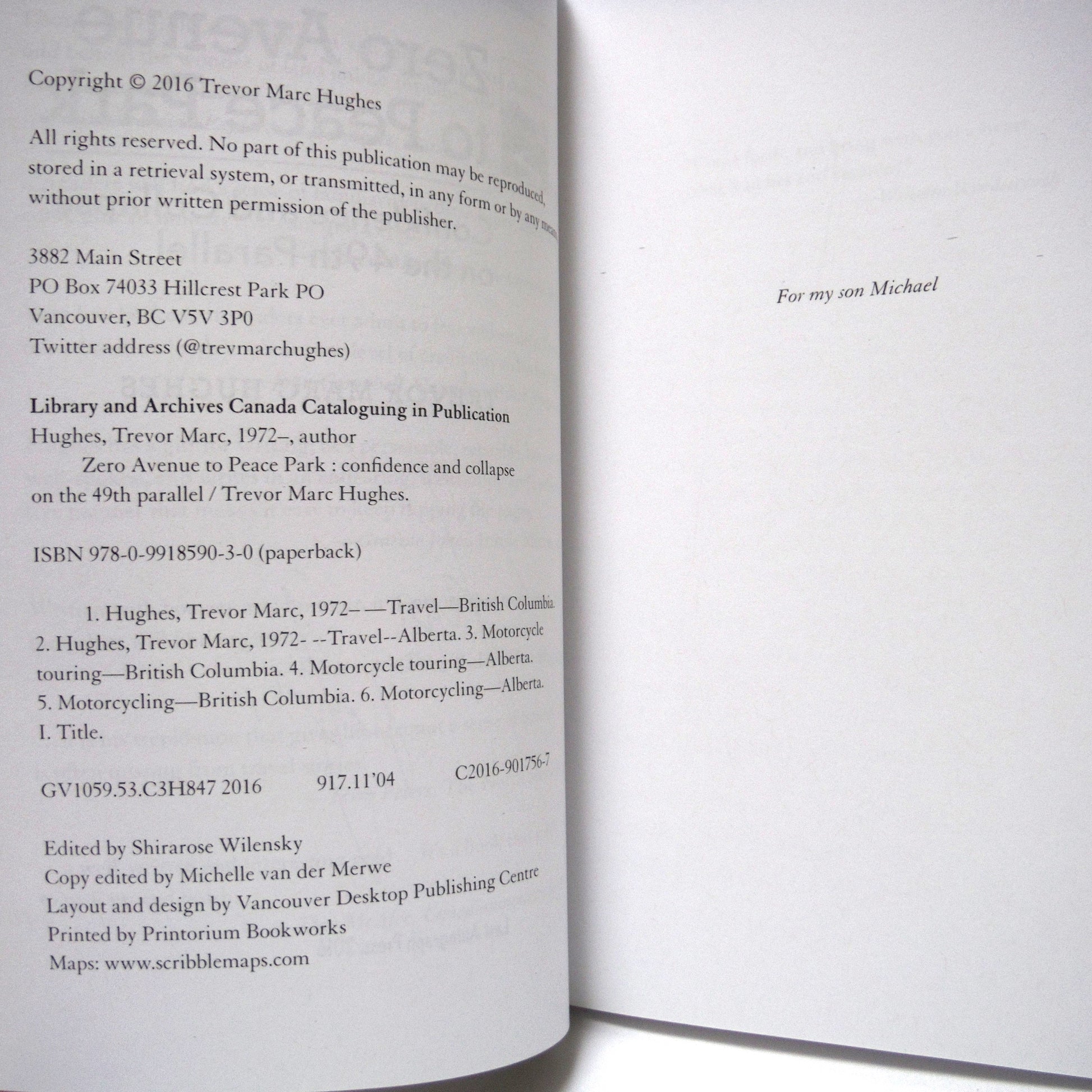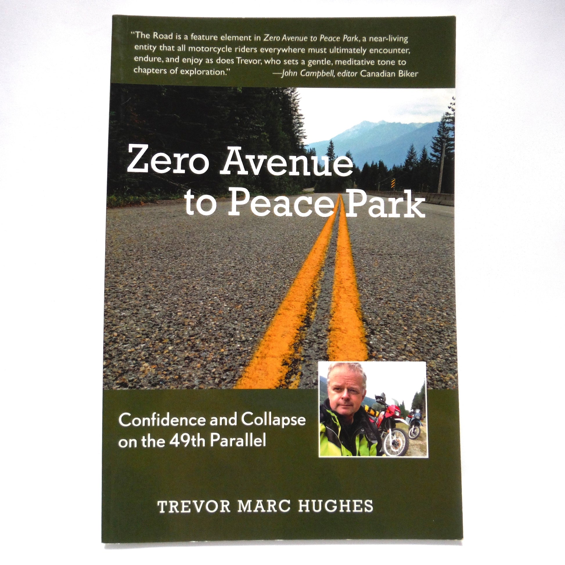 ZERO AVENUE TO PEACE PARK, Confidence and Collapse on the 49th Parallel, by Trevor Marc Hughes explores British Columbia by motorcycle. Joined by Wes Taylor, a motorcyclist from Colorado, their route takes them east, close to the Canada-US border.